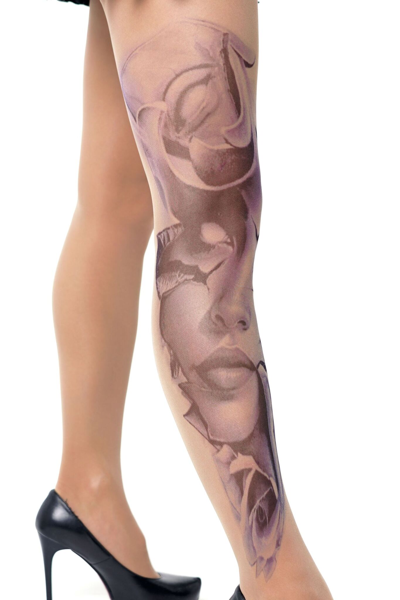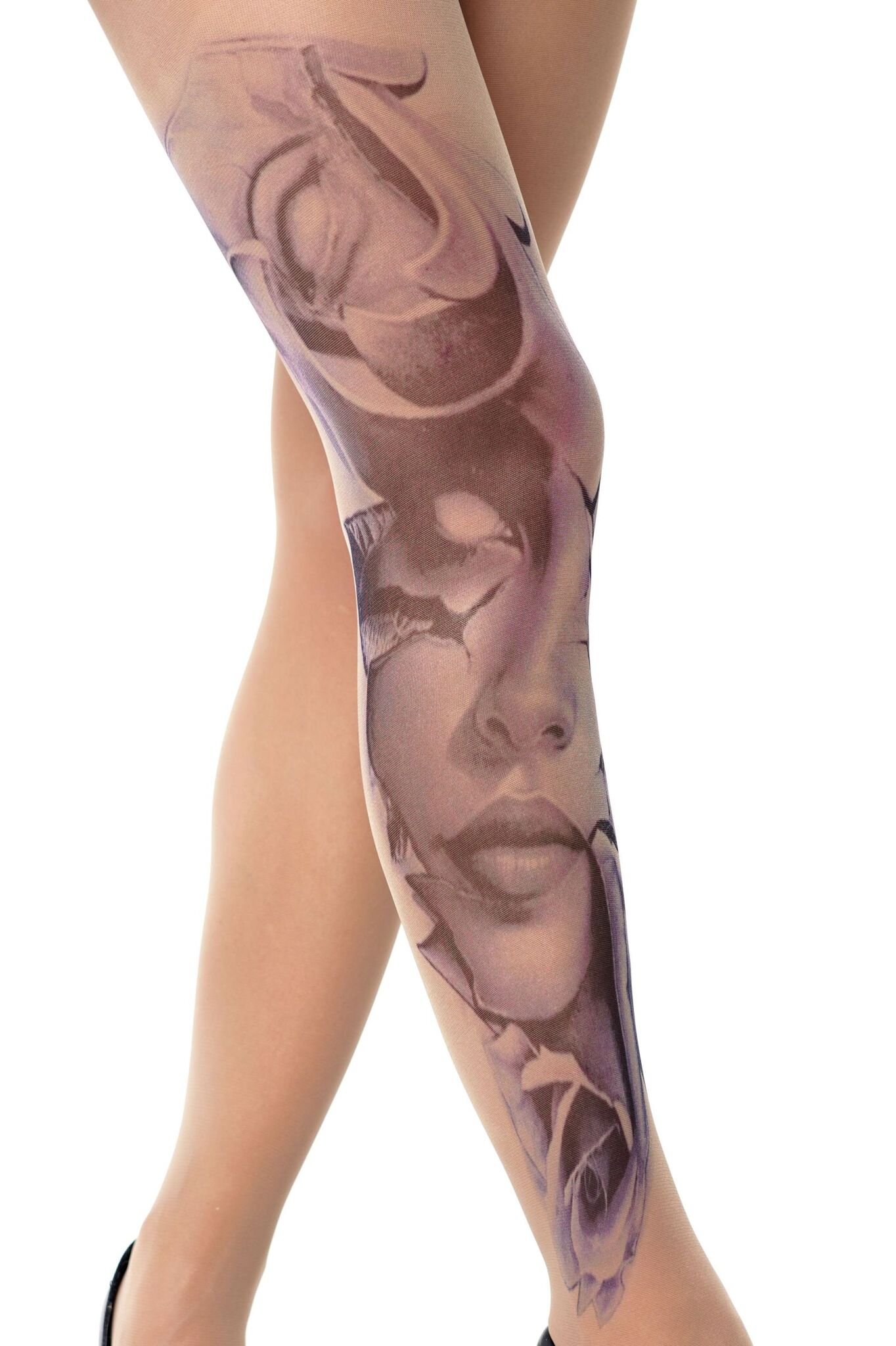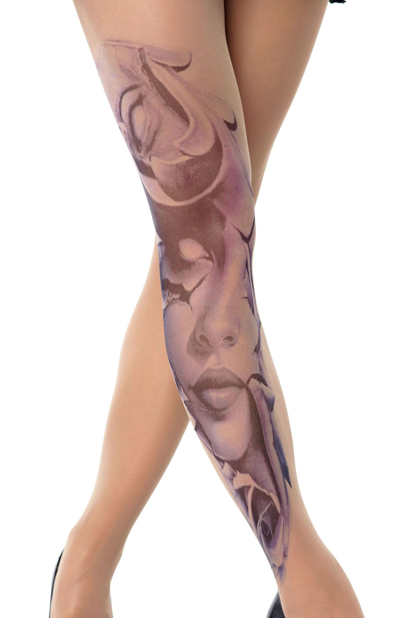 Поразите всех загадочным принтом в виде призрачного женского лица и роз. Эти колготки станут вашим секретным оружием соблазнения.