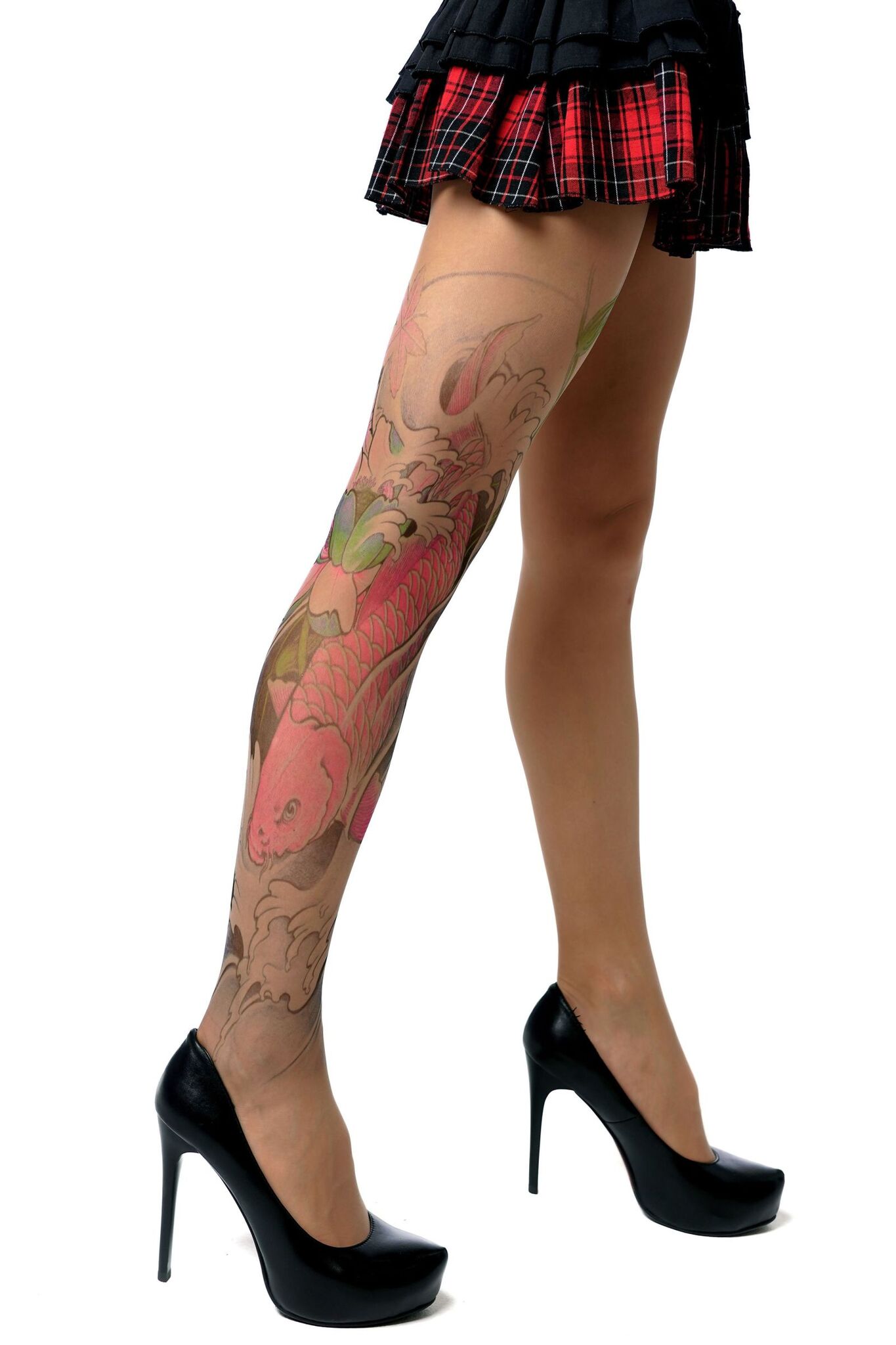 Эффектные колготки с детализированным принтом японского карпа кои подчеркнут вашу индивидуальность и добавят смелый акцент в любой образ. Уникальный рисунок на правой ноге сохраняет яркость после многократных стирок, создавая иллюзию настоящей татуировки.