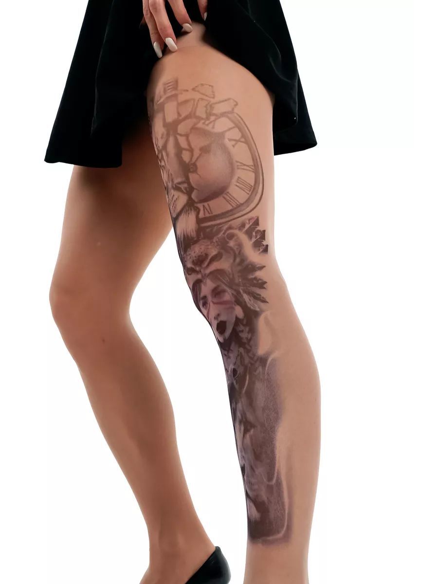 Хотите выделиться из толпы? Колготки с эффектом татуировки в виде шаманки подчеркнут вашу индивидуальность и добавят загадочности любому образу. Идеальное решение для вечеринок и особых случаев!
