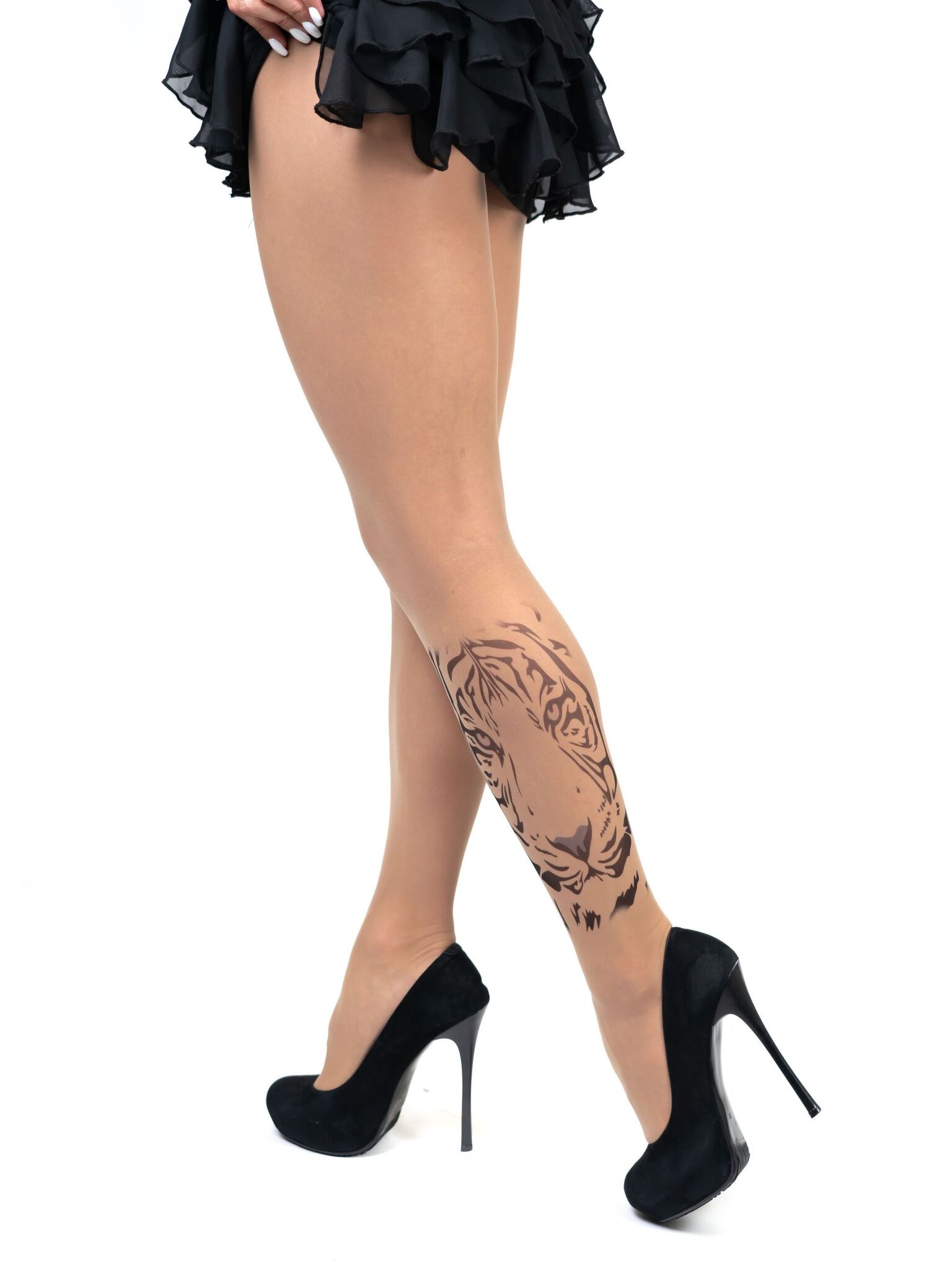 Колготки "STOP Your Style" с принтом тигра, бежевые, размер S-M-L, плотность 40 ден