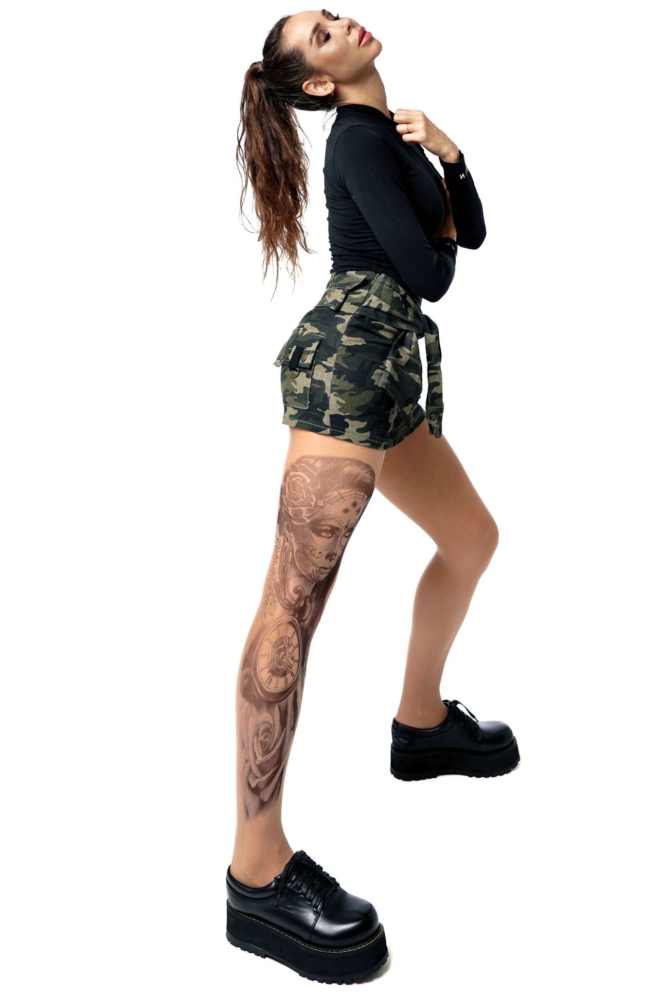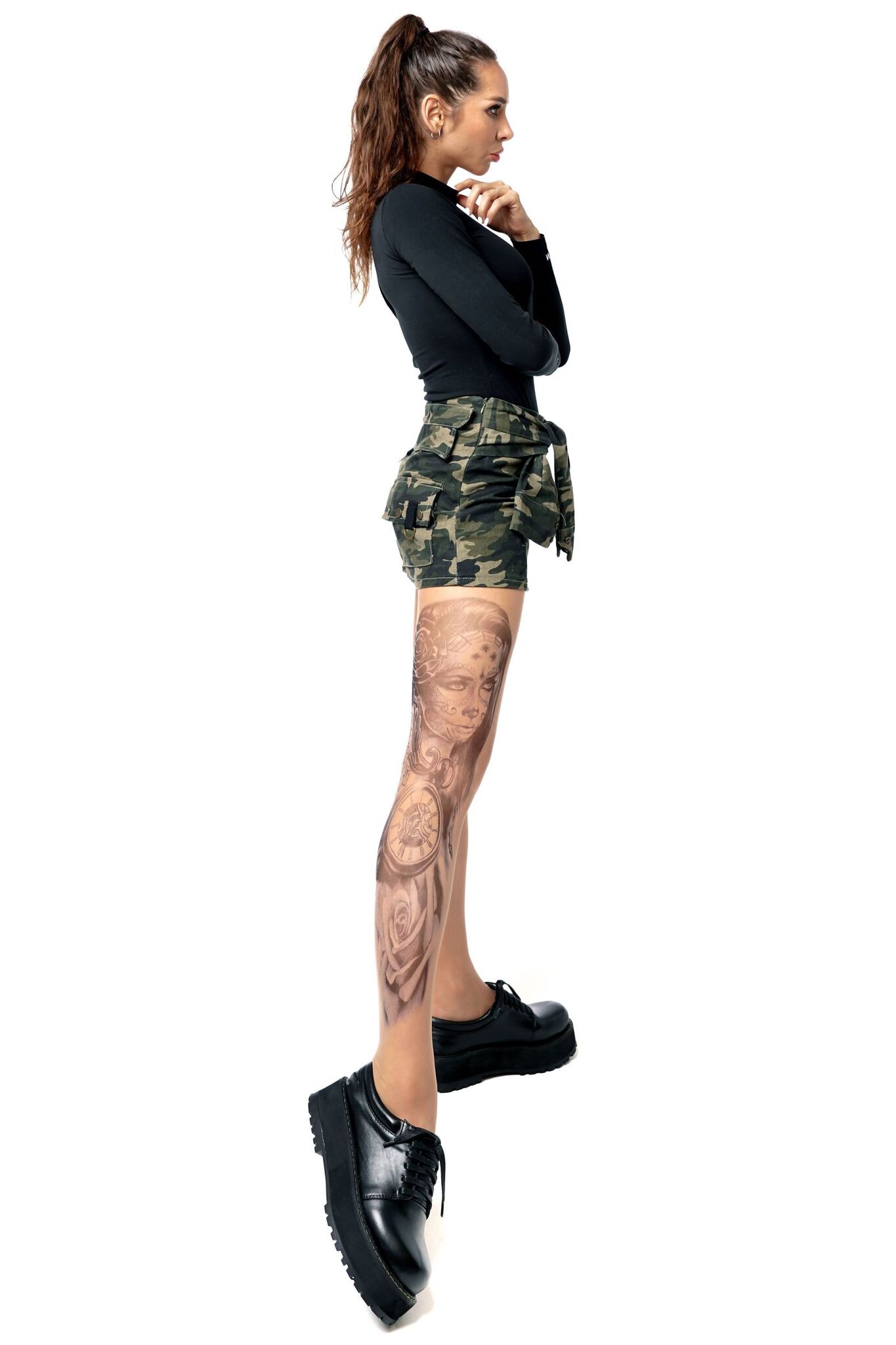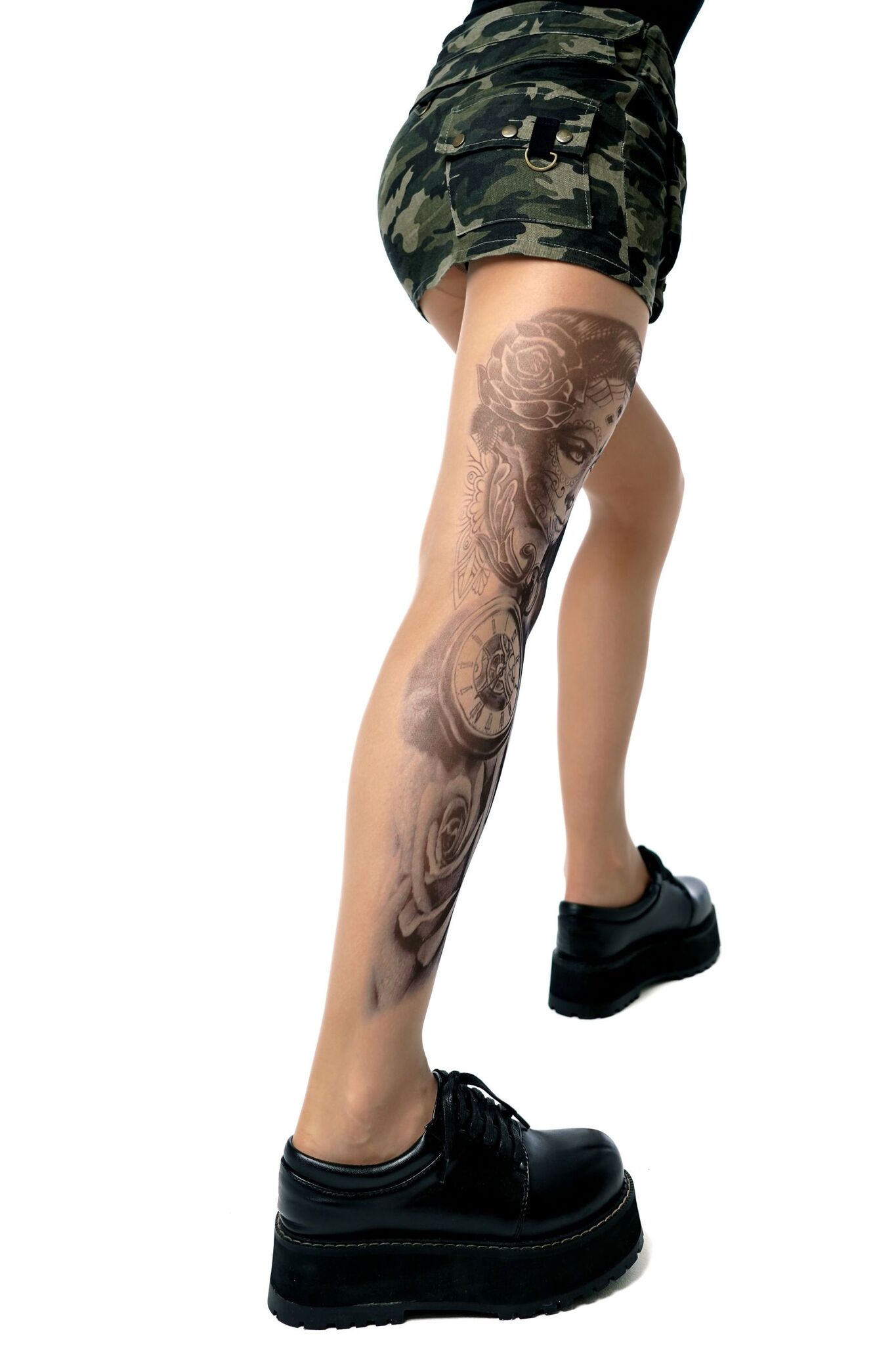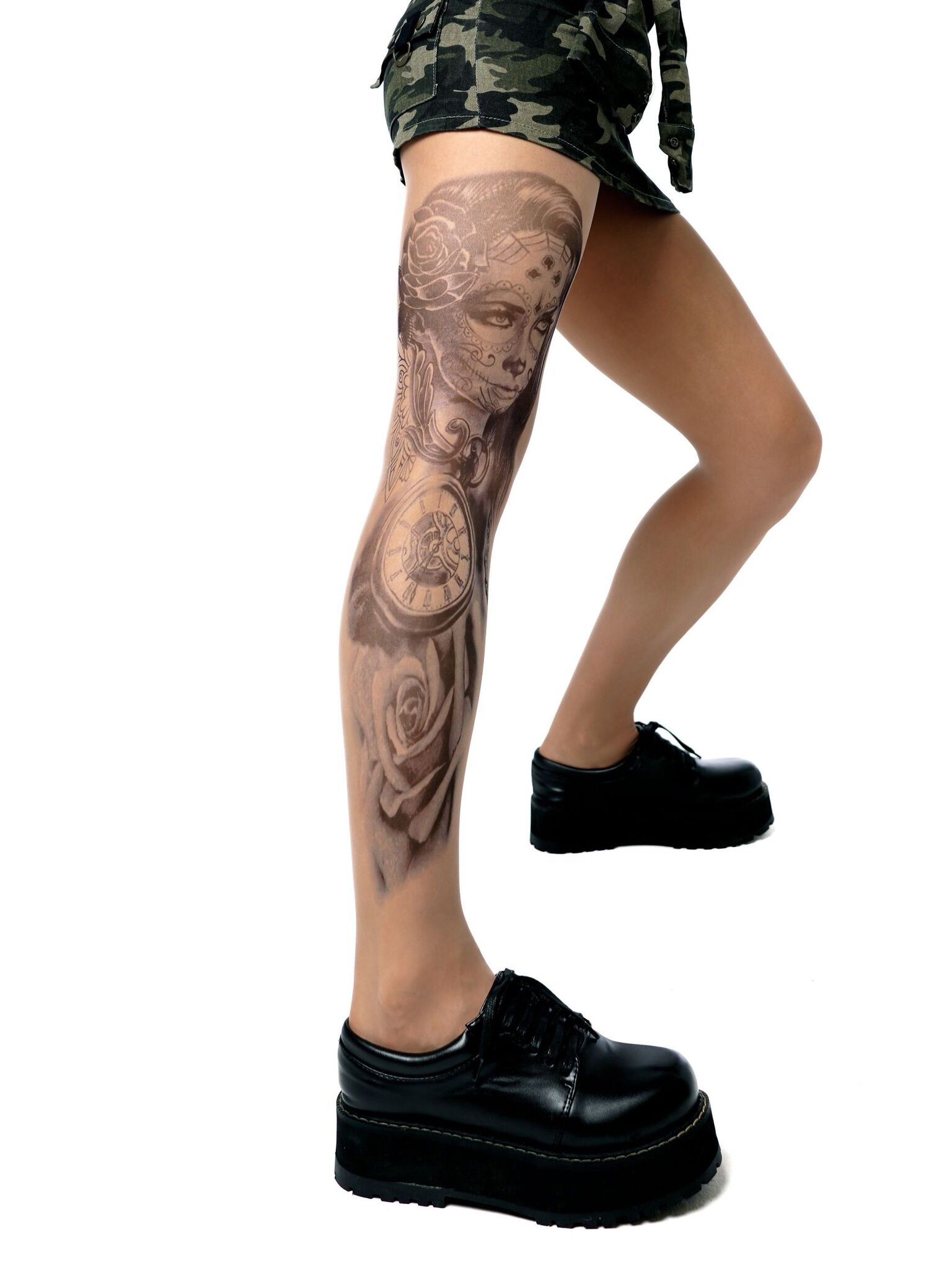Эти колготки с рисунком девушки с макияжем калавера на левой ножке — это не просто элемент гардероба, а настоящая находка для тех, кто ценит стиль и индивидуальность. Они идеально подойдут для создания яркого образа, который привлечет внимание и подчеркнет вашу индивидуальность.