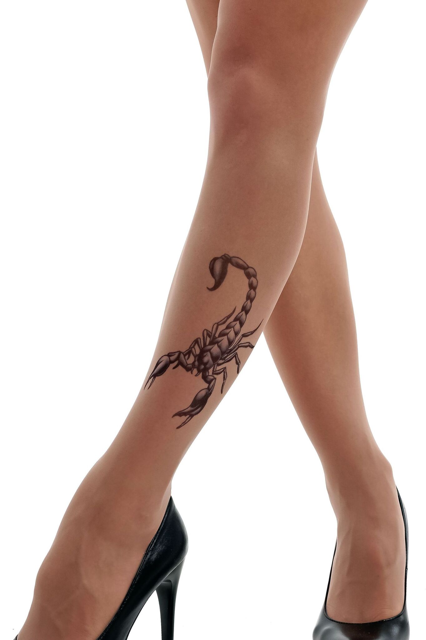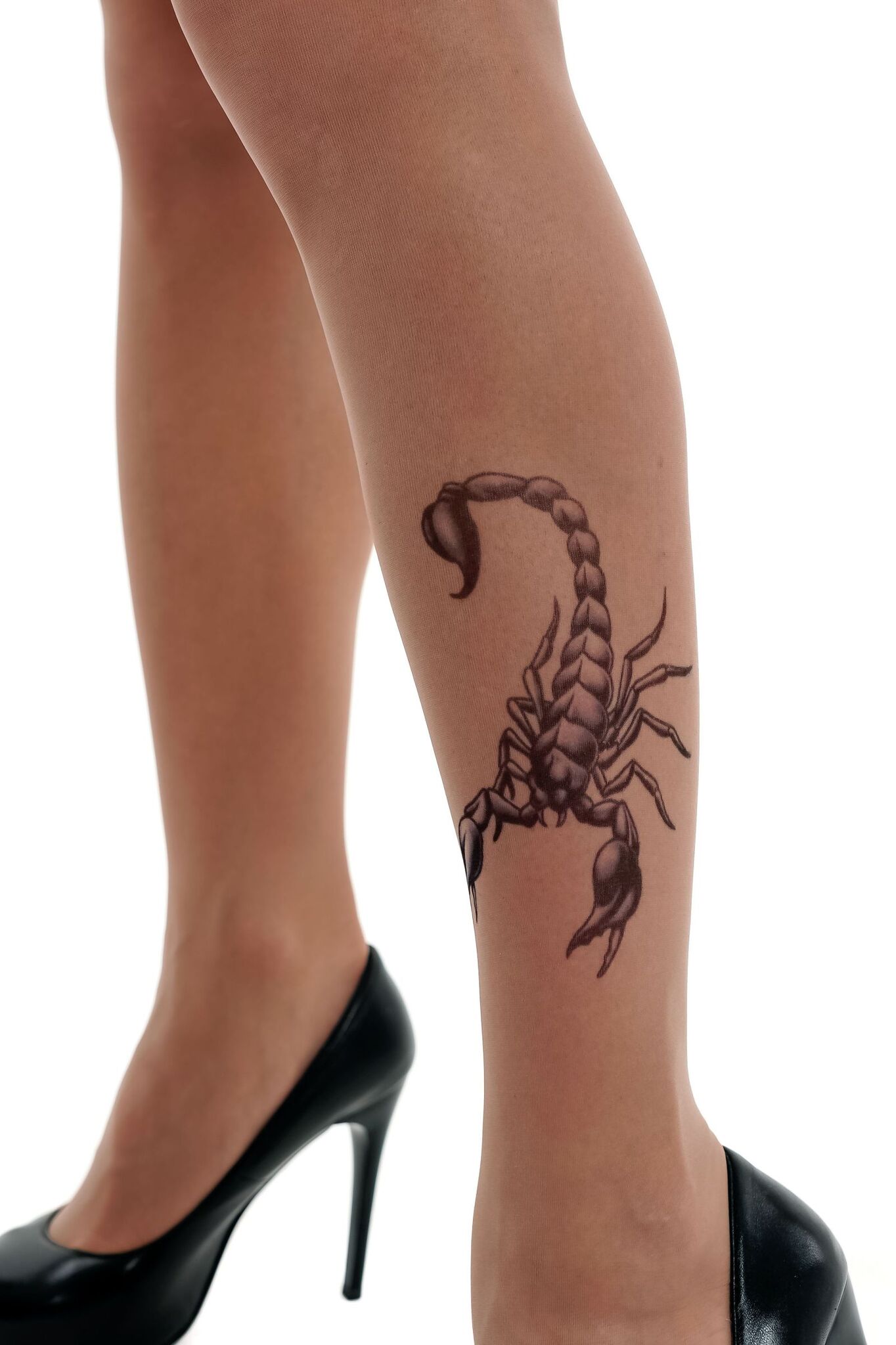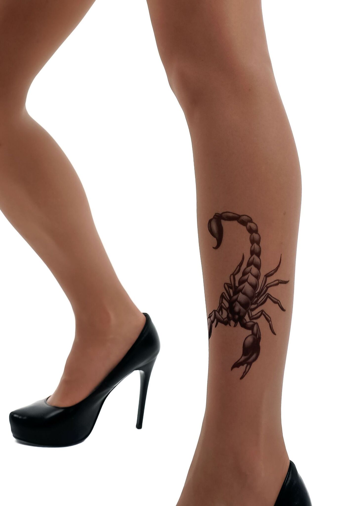 Эти колготки с эффектом татуировки в виде скорпиона на левой ноге станут вашим секретным оружием в создании стильного образа. Они сочетают в себе практичность повседневной носки и дерзкий акцент, который не останется незамеченным.