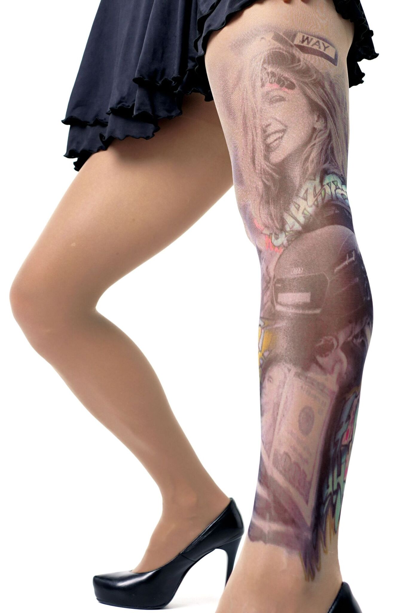 Стильные колготки с эффектом художественной татуировки