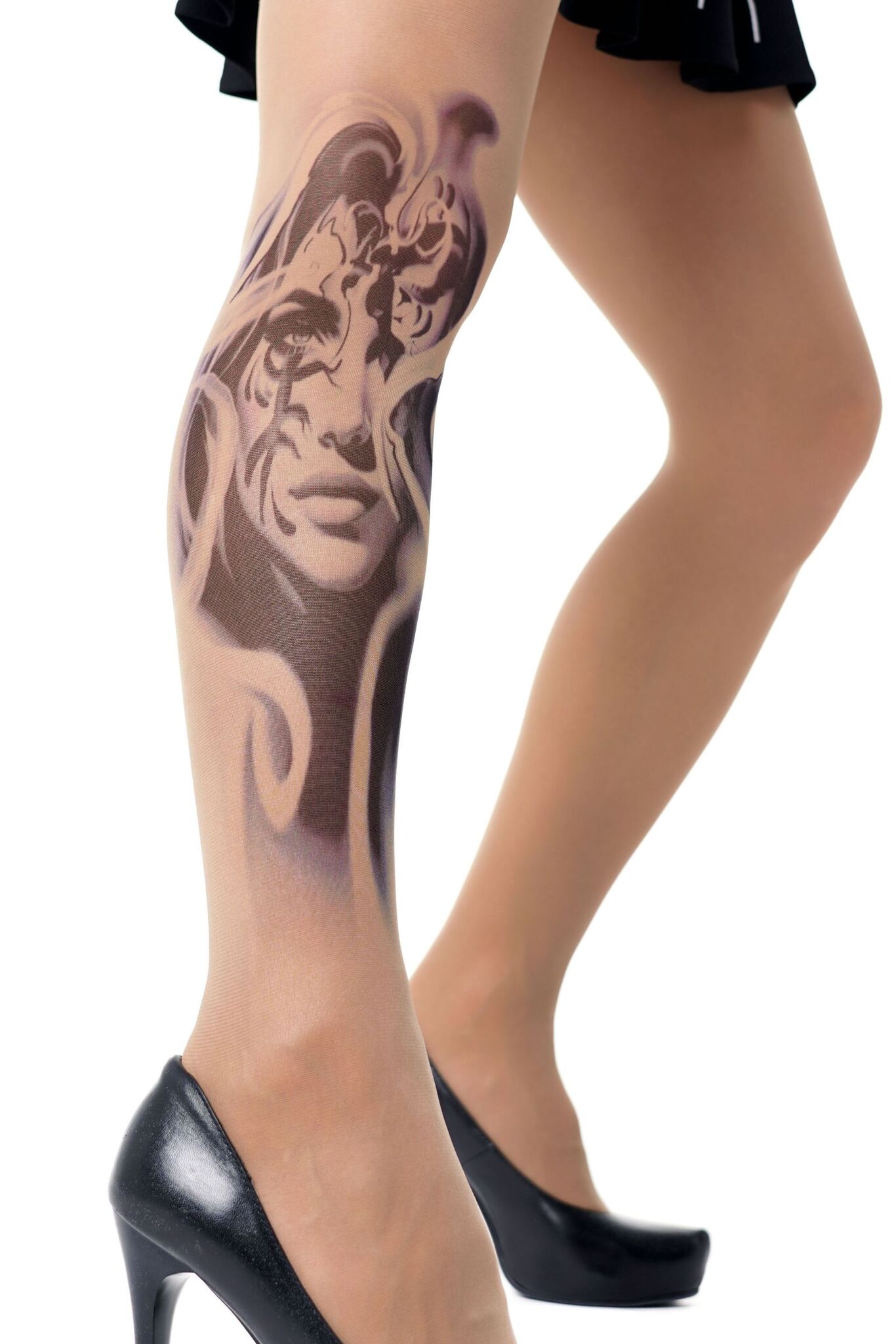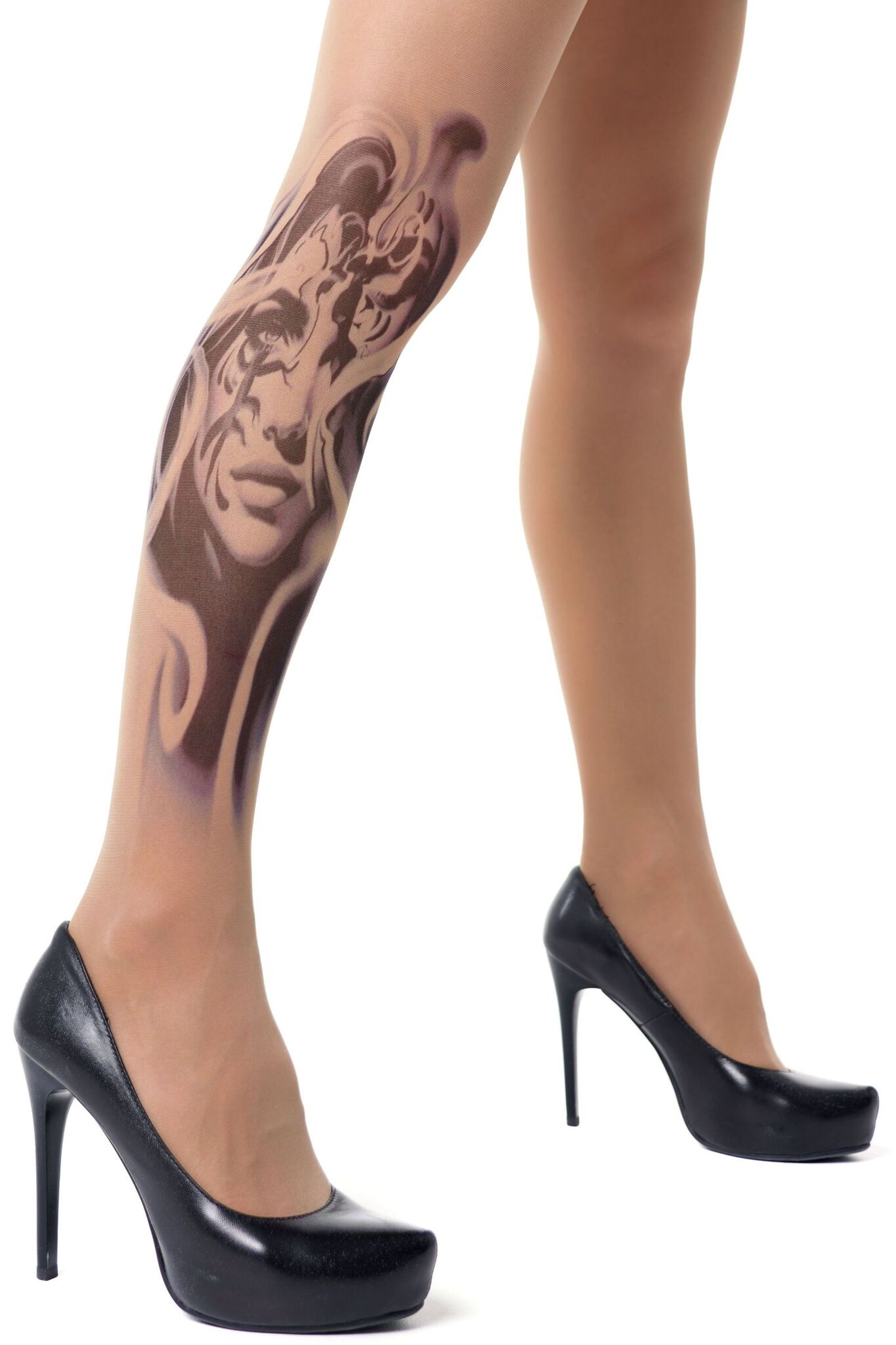 Эти колготки с эффектом татуировки мгновенно преобразят ваш стиль. Уникальный принт в виде женского лица создает модный акцент и подчеркивает вашу неповторимость.