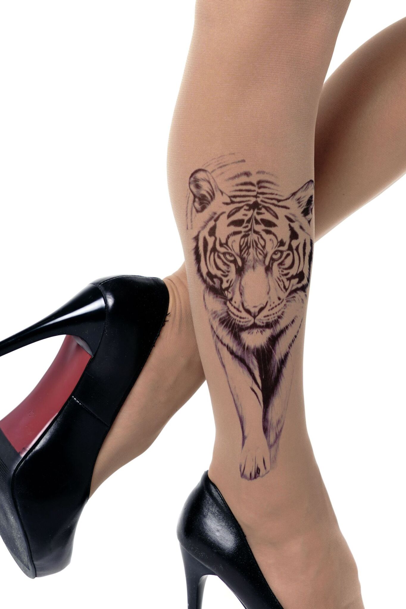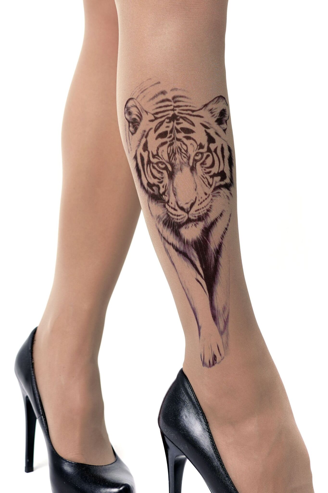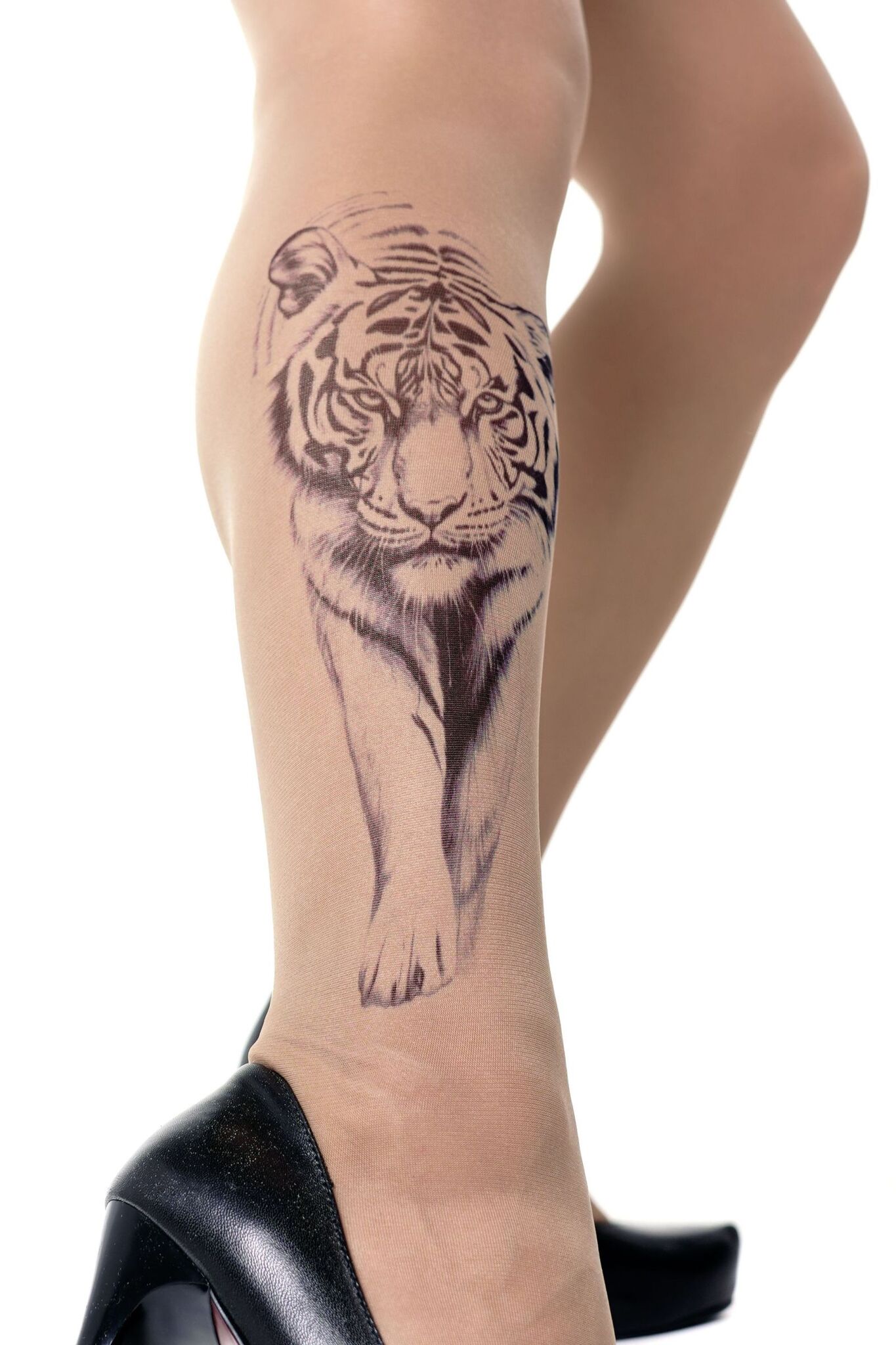 Колготки с эффектом тату в виде крадущегося тигра станут вашим секретным оружием в создании запоминающегося образа. Принт настолько реалистичен, что создает эффект второй кожи.