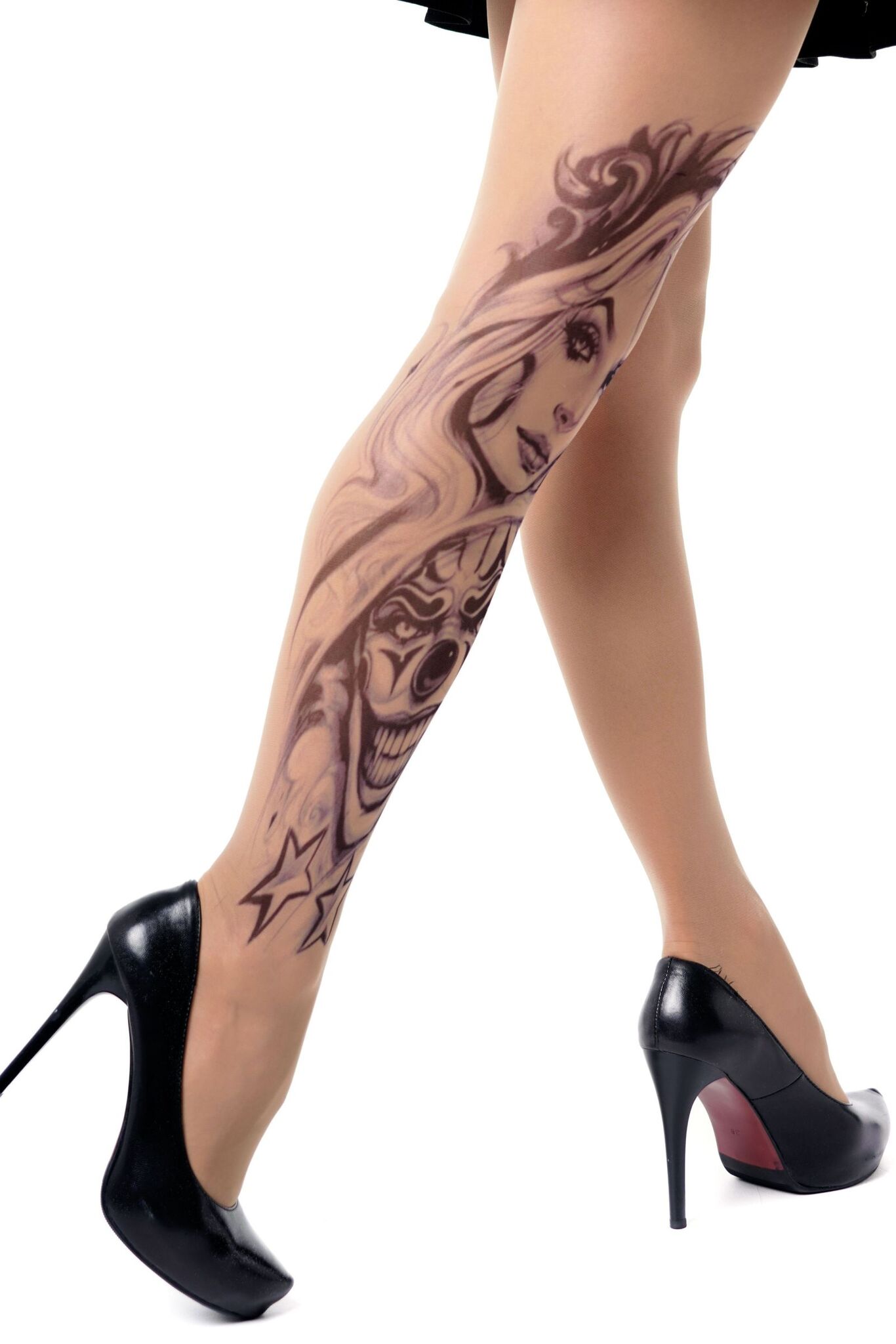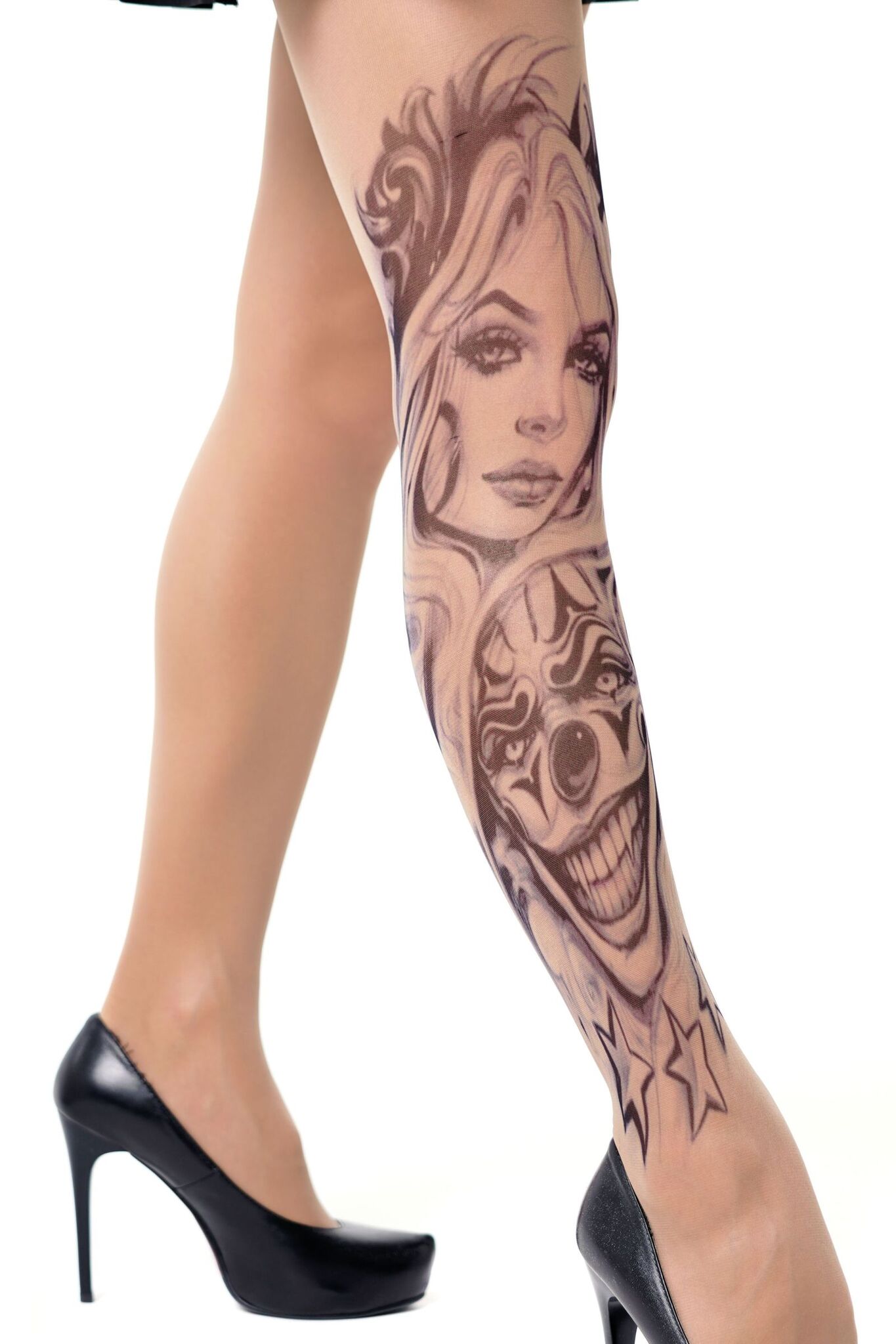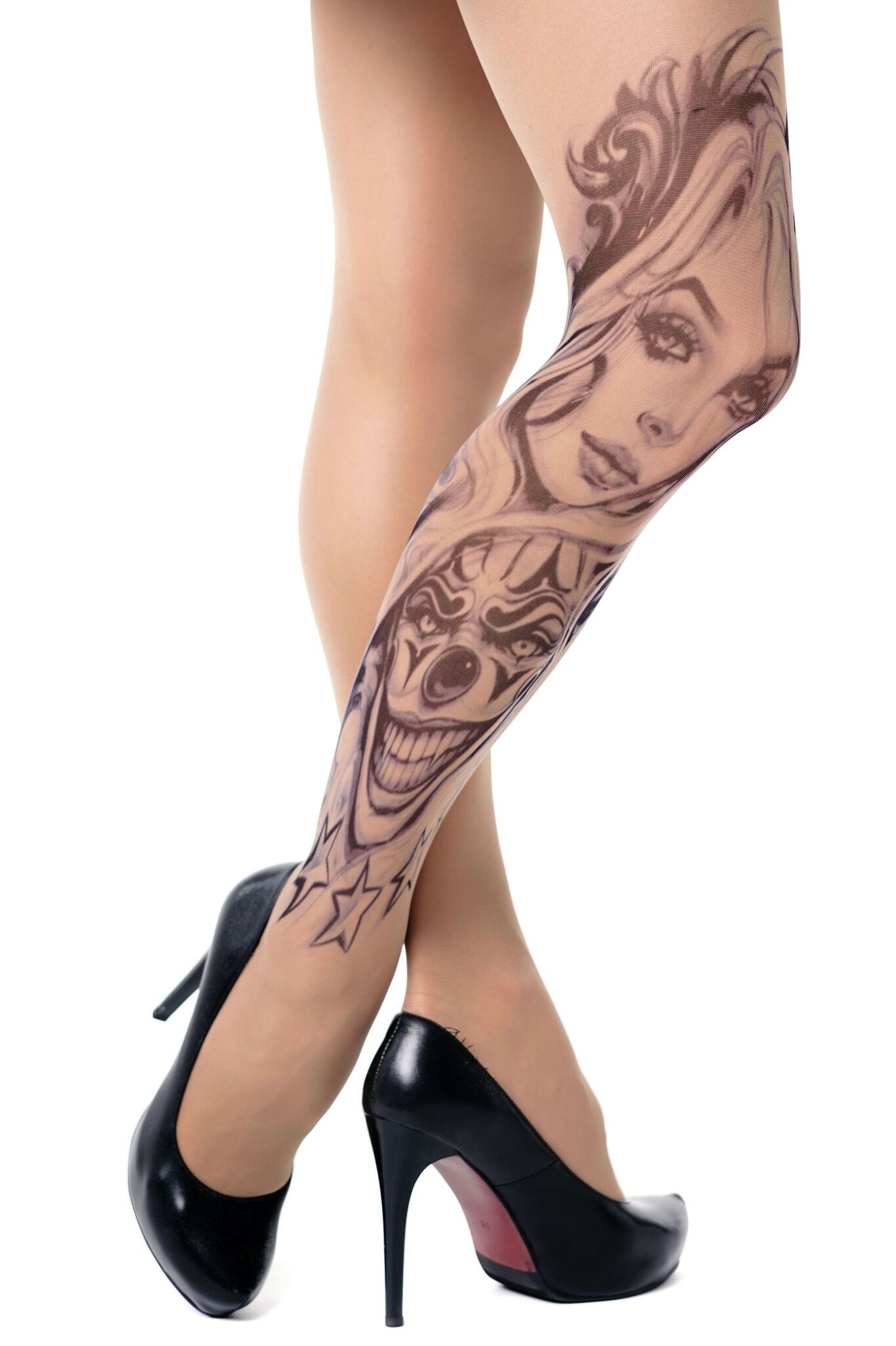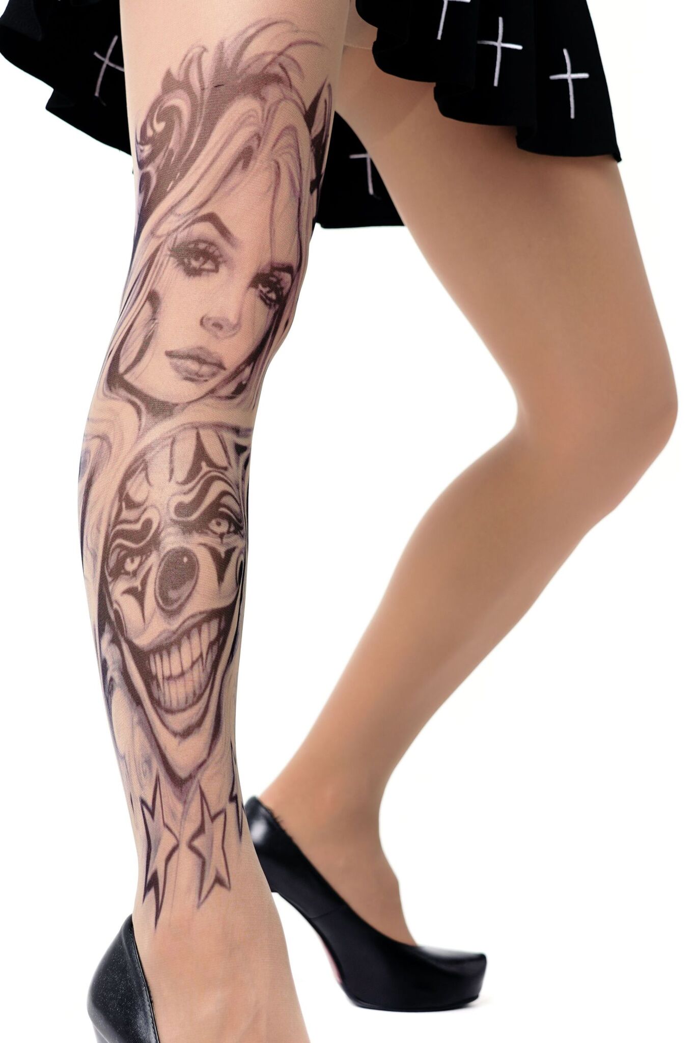Колготки с принтом «девушка и клоун», 40 ден, бежевые, XL-XXXL, полиамид/эластан
