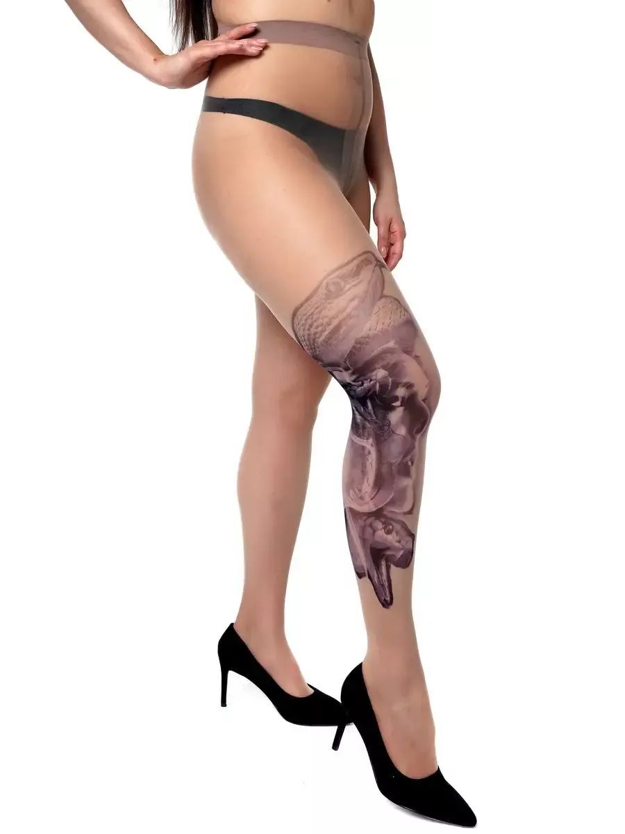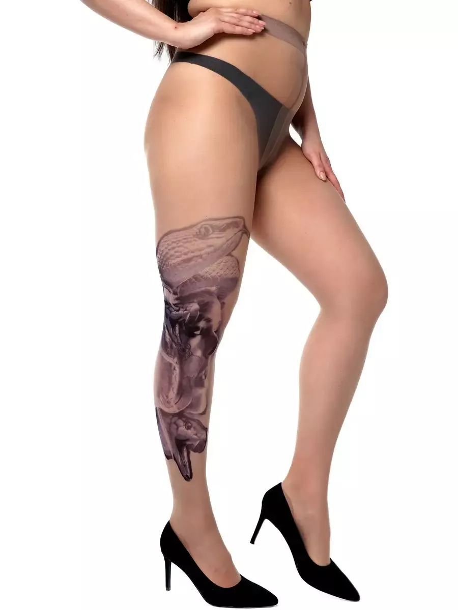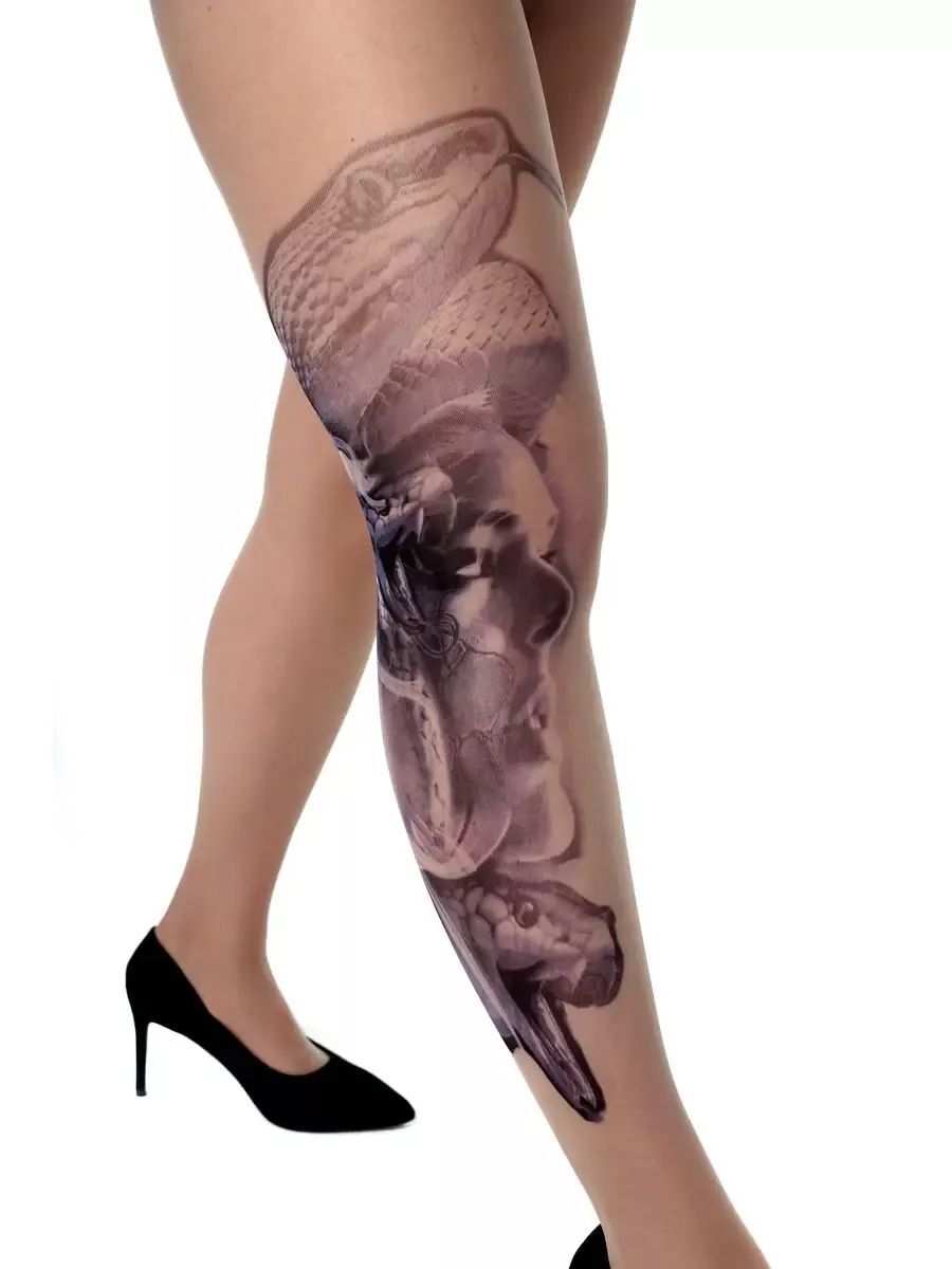 Создайте неповторимый стиль и подчеркните свою индивидуальность с помощью колготок с эффектом татуировки. Принт в виде девушки со змеями добавит загадочности и уверенности в себе.