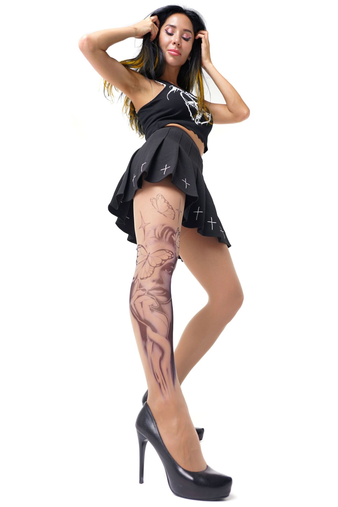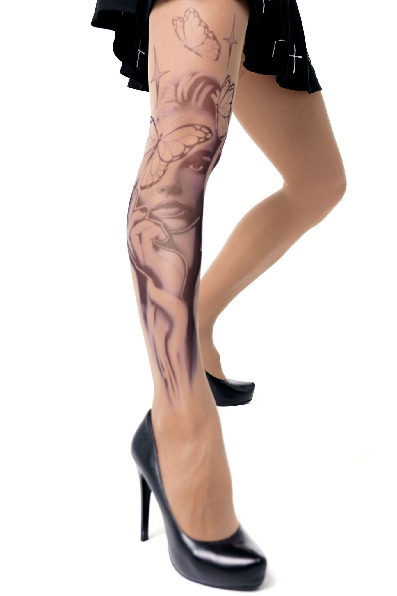 Эти колготки с эффектом татуировки подчеркнут вашу индивидуальность и добавят загадочности. Благодаря уникальному дизайну с изображением девушки и бабочек, вы создадите неповторимый образ.