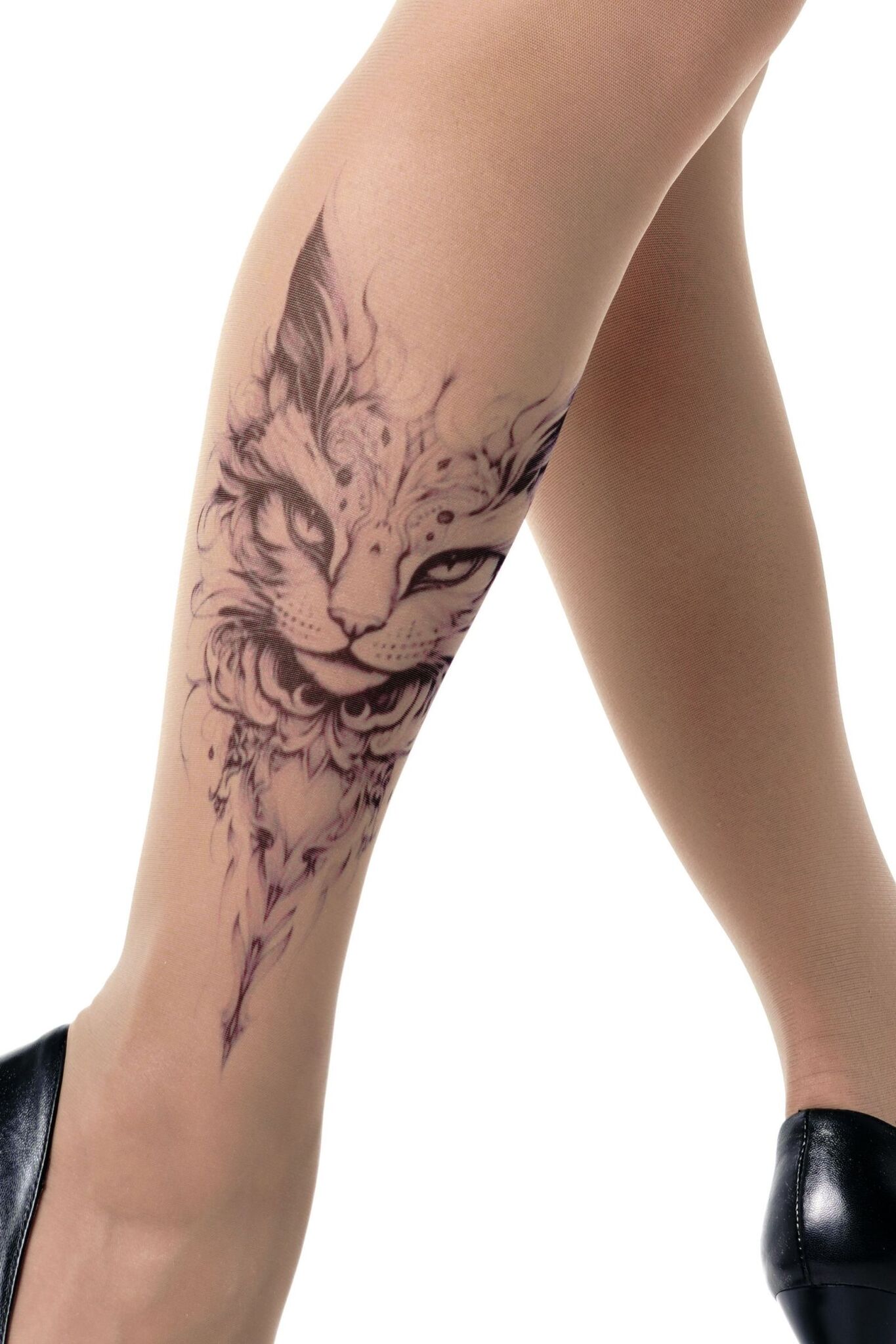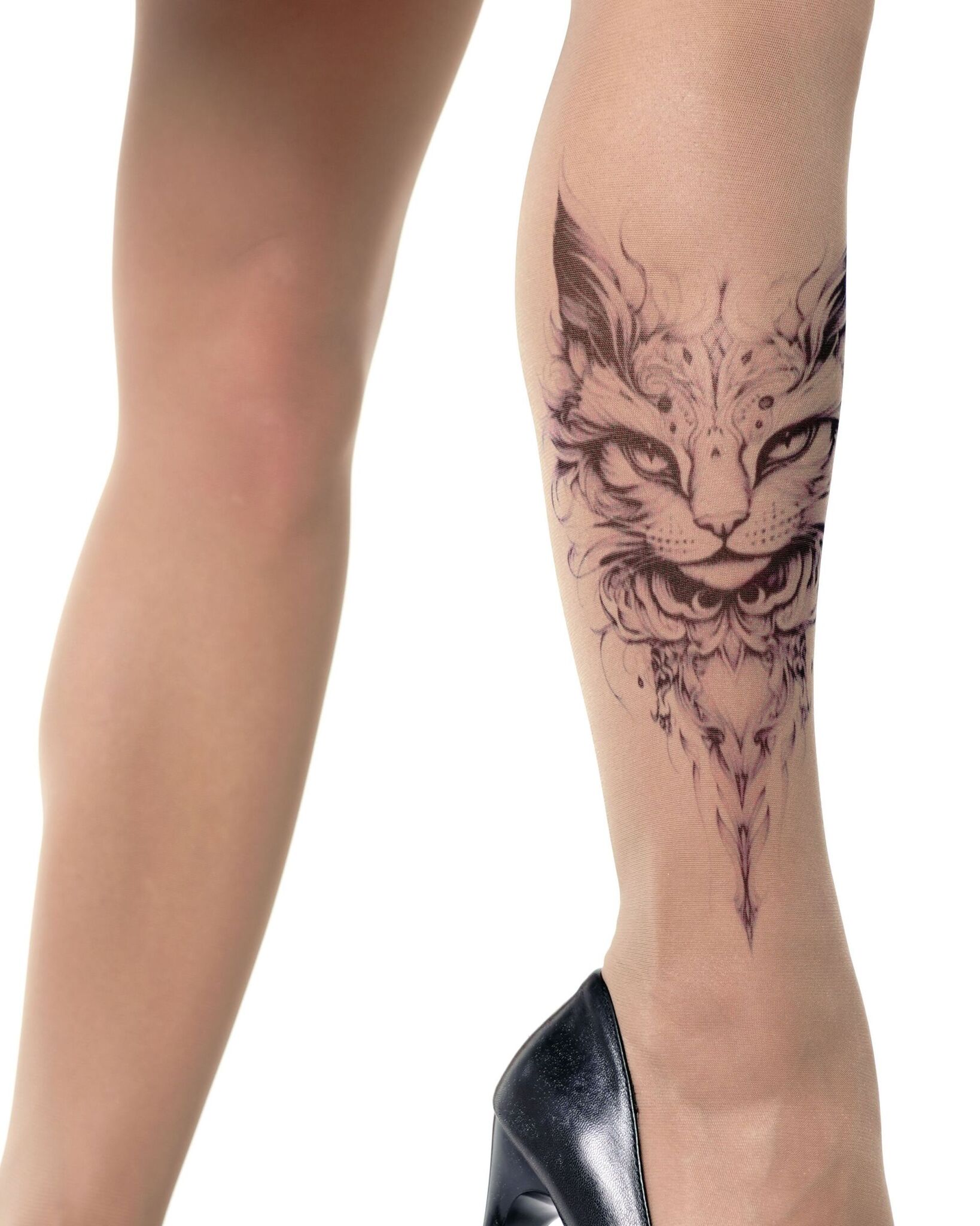 Колготки с эффектом татуировки в виде кошачьей мордочки станут вашим секретным оружием в создании соблазнительного образа. Принт выглядит настолько реалистично, что его легко спутать с настоящей татуировкой.
