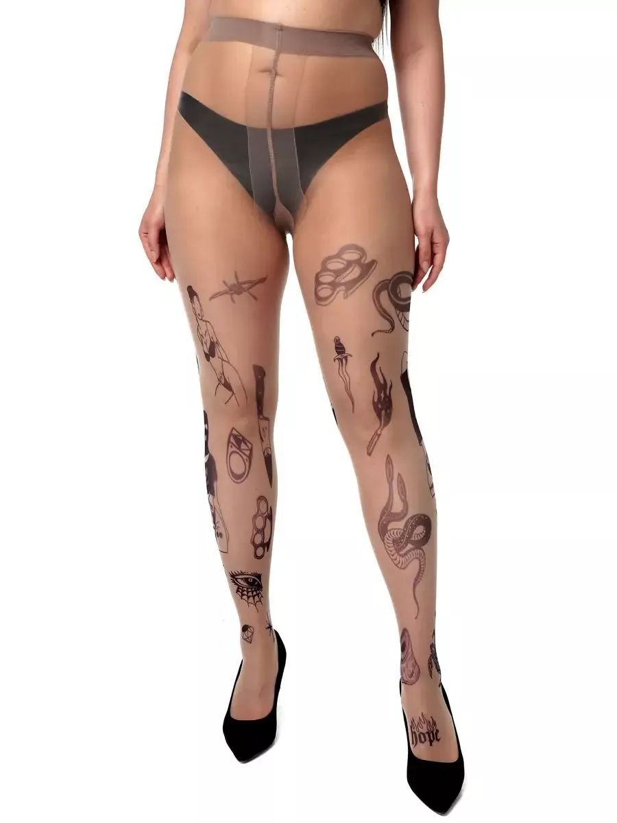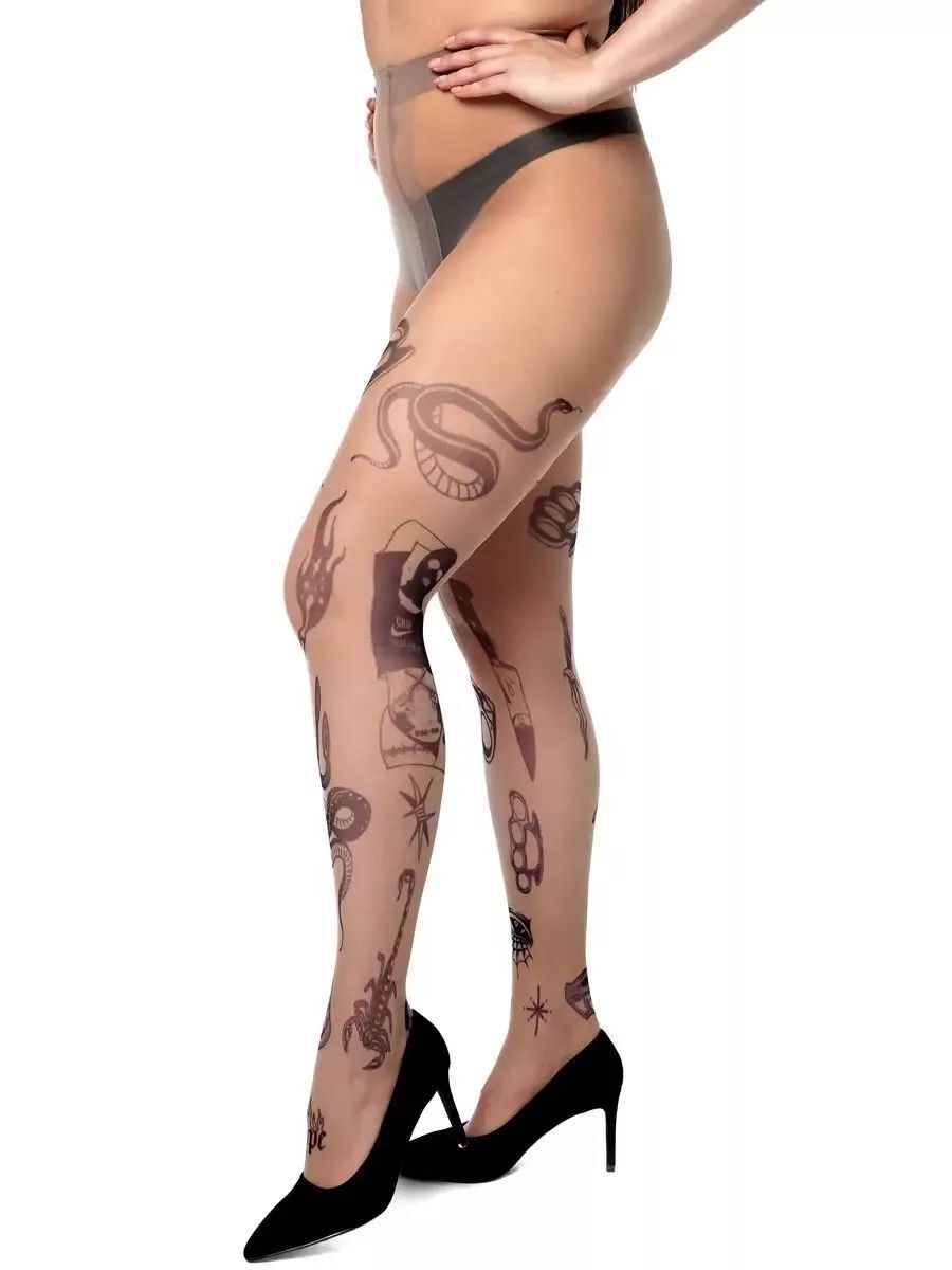 Почему стоит выбрать именно эти колготки? Во-первых, они выполнены из высококачественного материала: 88% полиамид и 12% эластан, что обеспечивает долговечность и эластичность. Во-вторых, уникальный принт в виде татуировок добавляет изюминку вашему образу, позволяя выделиться из толпы. Высокая талия и широкая резинка обеспечивают надежную посадку, не сковывая движений.