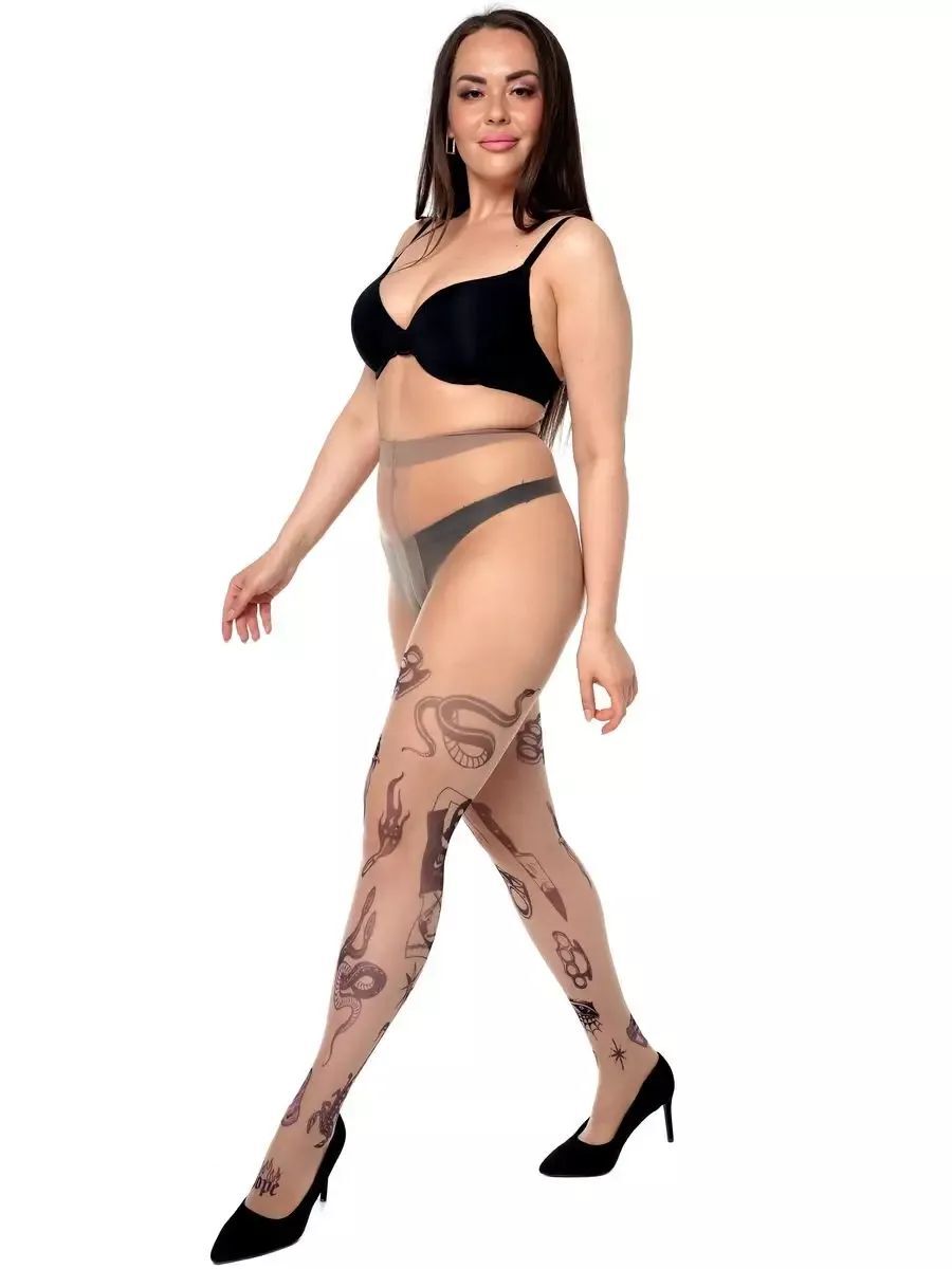 Погрузитесь в мир моды и самовыражения с нашими колготками +size с принтом в виде мини-тату. Эти колготки не только подчеркнут вашу индивидуальность, но и обеспечат комфорт на протяжении всего дня. Принт не стирается и не выгорает со временем, что делает их идеальным выбором для повседневной носки.