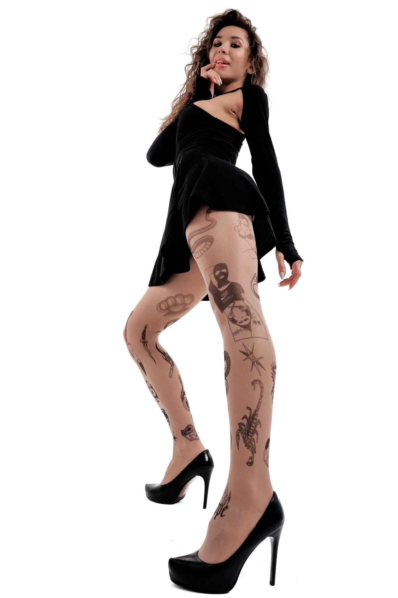 Стильные колготки +size с принтом мини-тату