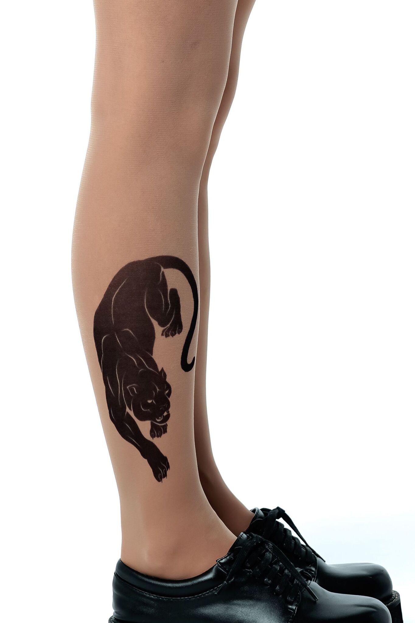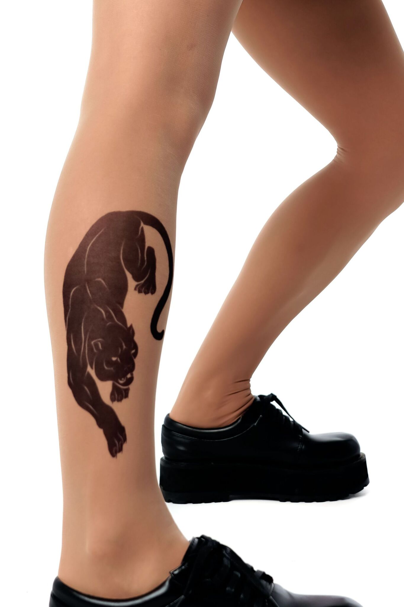 Привлекайте внимание и подчеркивайте индивидуальность с колготками, которые создают эффект реалистичной татуировки. Благодаря детализированному принту в виде пантеры на правой ноге, вы добавите изюминку в любой образ.
