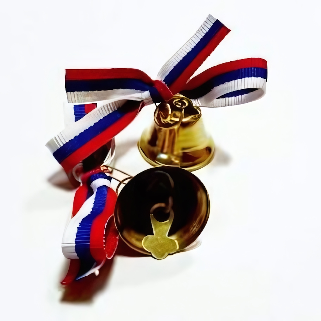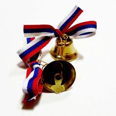 Колокольчик металлический для праздников с бантом-триколором, D25мм, булавка в комплекте