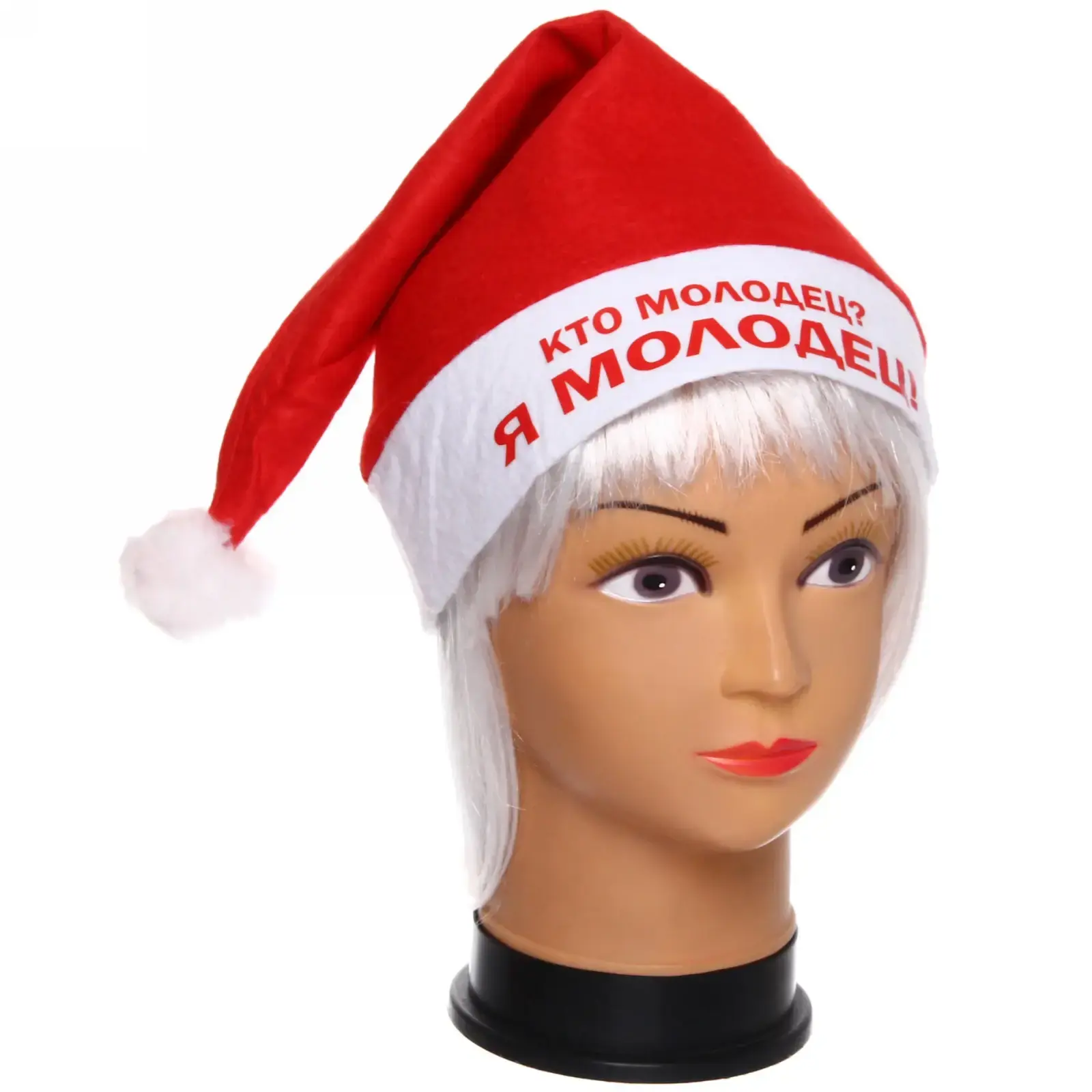 Колпак идеально подходит для новогодних праздников, корпоративов и тематических вечеринок. Он выполнен из мягкого флисового материала, что обеспечивает комфорт при ношении. Размер 29х37 см делает его универсальным для большинства взрослых. Надпись на белом отвороте «Кто молодец? Я молодец!» добавляет игривости и веселья в ваш образ.