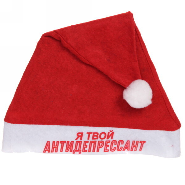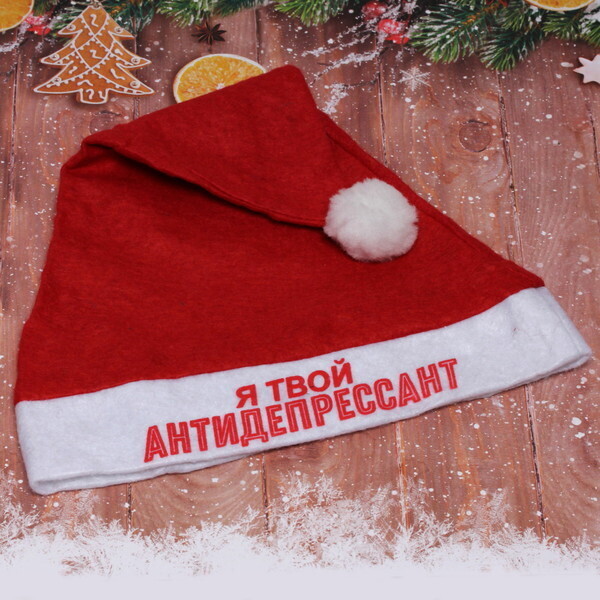 Новогодний текстильный колпак «Я твой антидепрессант!» — это идеальный аксессуар для создания праздничной атмосферы. Яркий красный цвет и оригинальная надпись сделают ваш образ незабываемым на любой новогодней вечеринке. Этот колпак не только поднимет настроение, но и станет отличным дополнением к вашему костюму или декору.