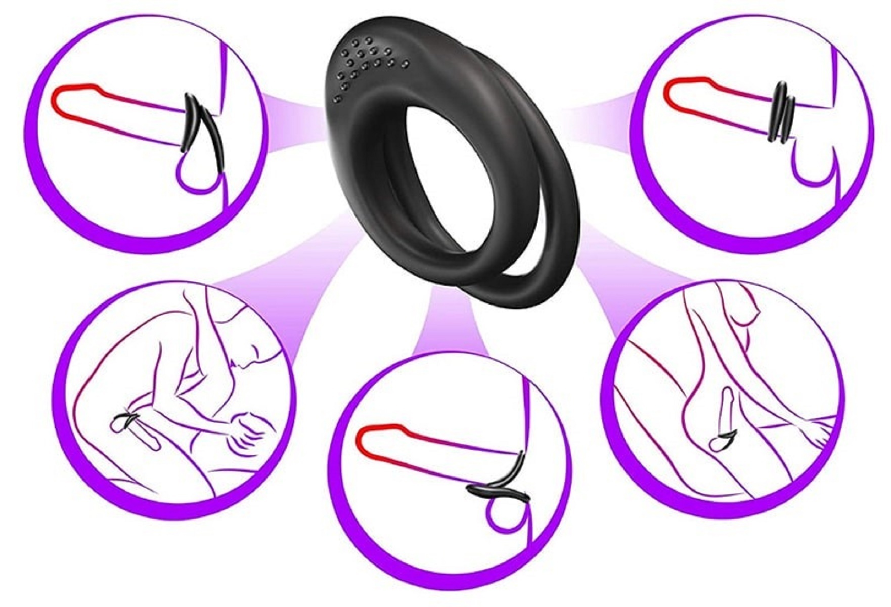 Эрекционное кольцо двойное "Incredible Duo", гипоаллергенный силикон, черный цвет, для усиления ощущений