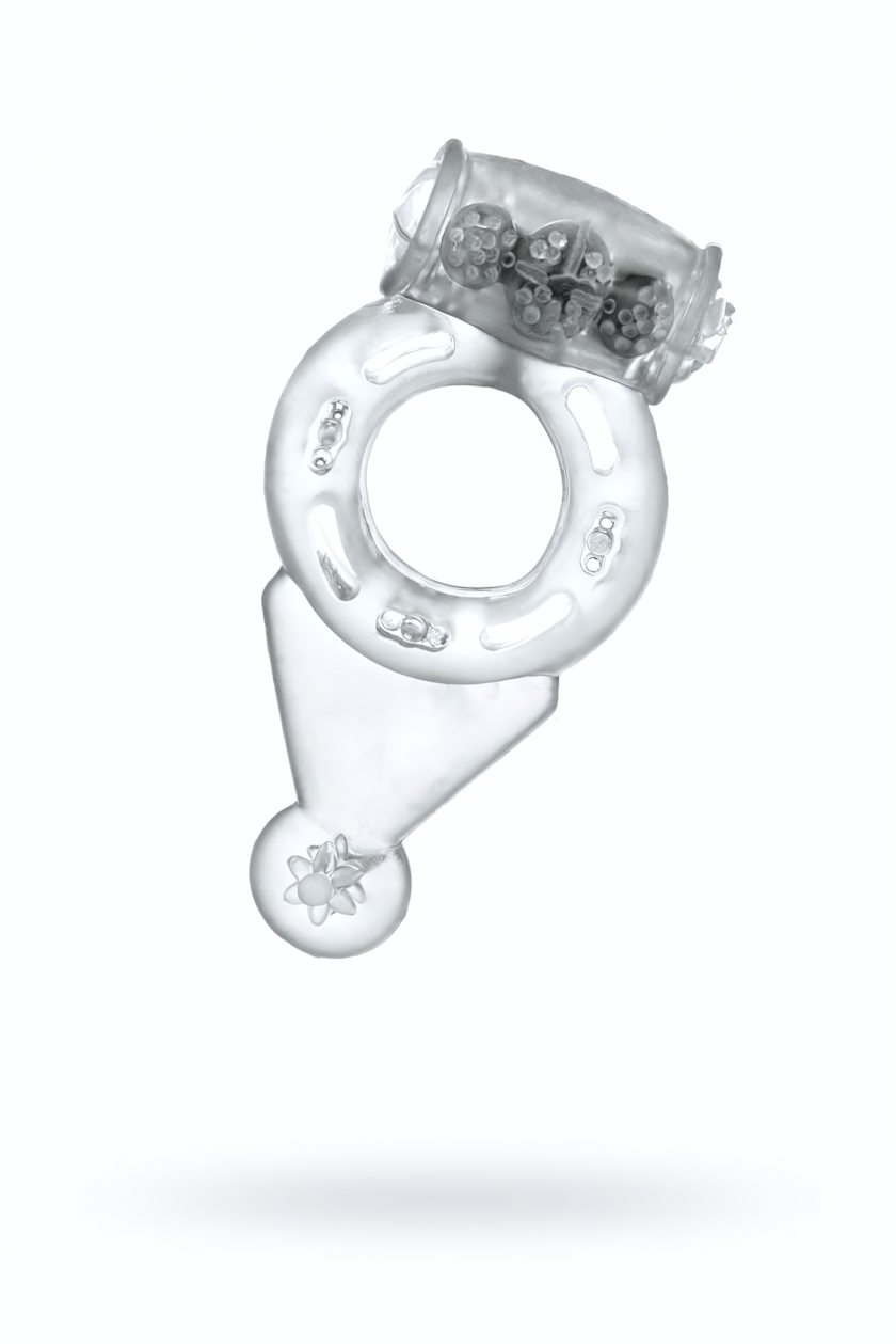 Виброкольцо эрекционное с двойной стимуляцией, хвостик с вибрацией, прозрачный силикон, водонепроницаемое
