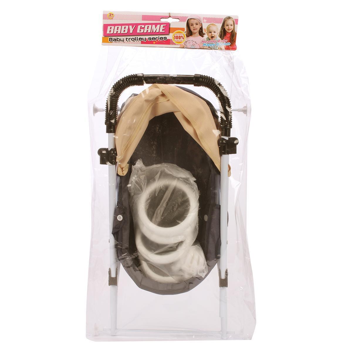 Коляска для куклы лежачая 'Baby Trolley', складная, металл/ЭВА, черно-бежевая