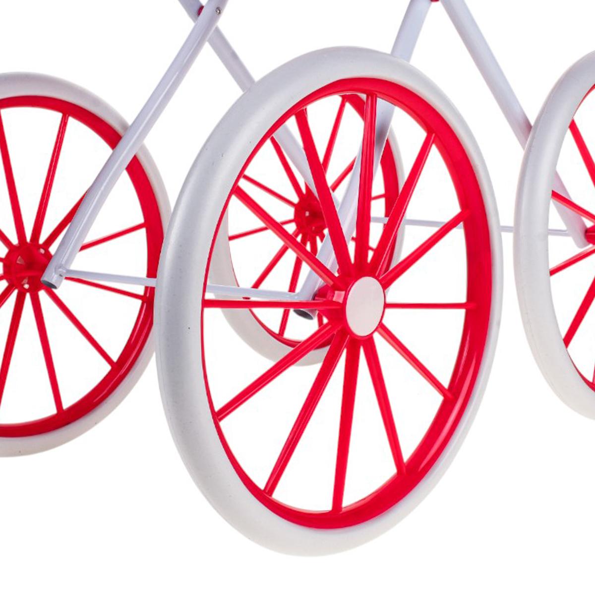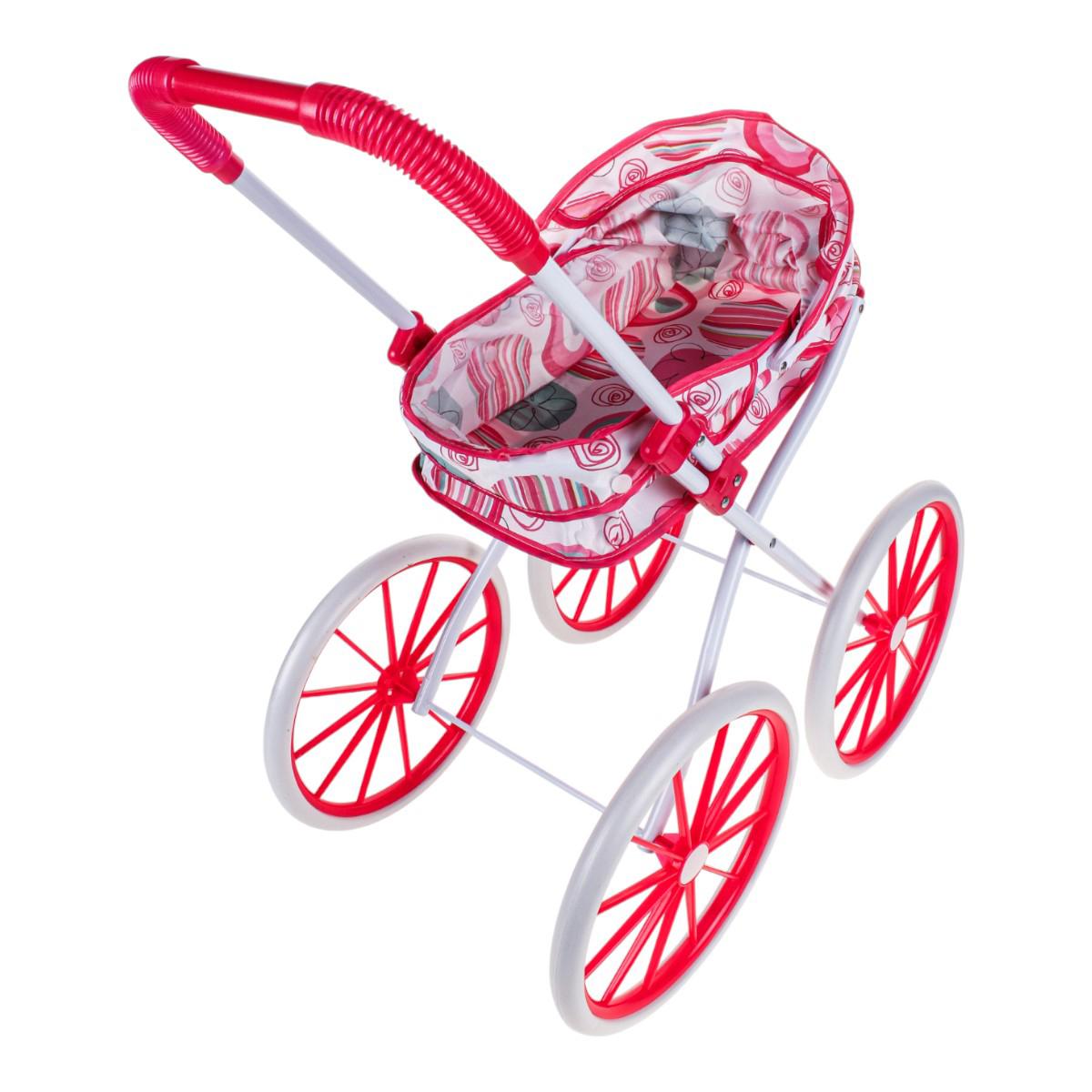 Коляска подходит для кукол стандартного размера. Лёгкая и маневренная конструкция обеспечивает комфортное передвижение даже для самых маленьких хозяек.
