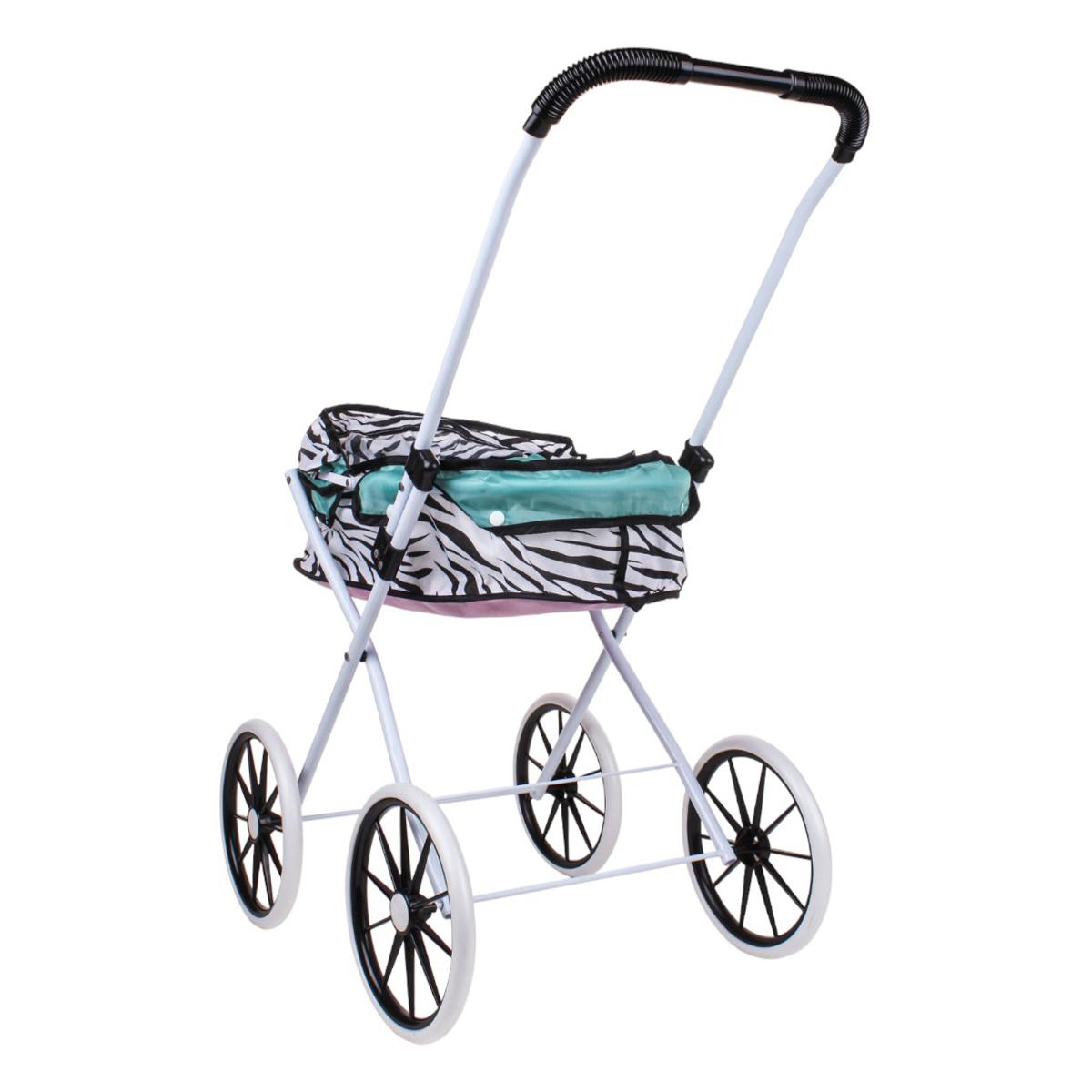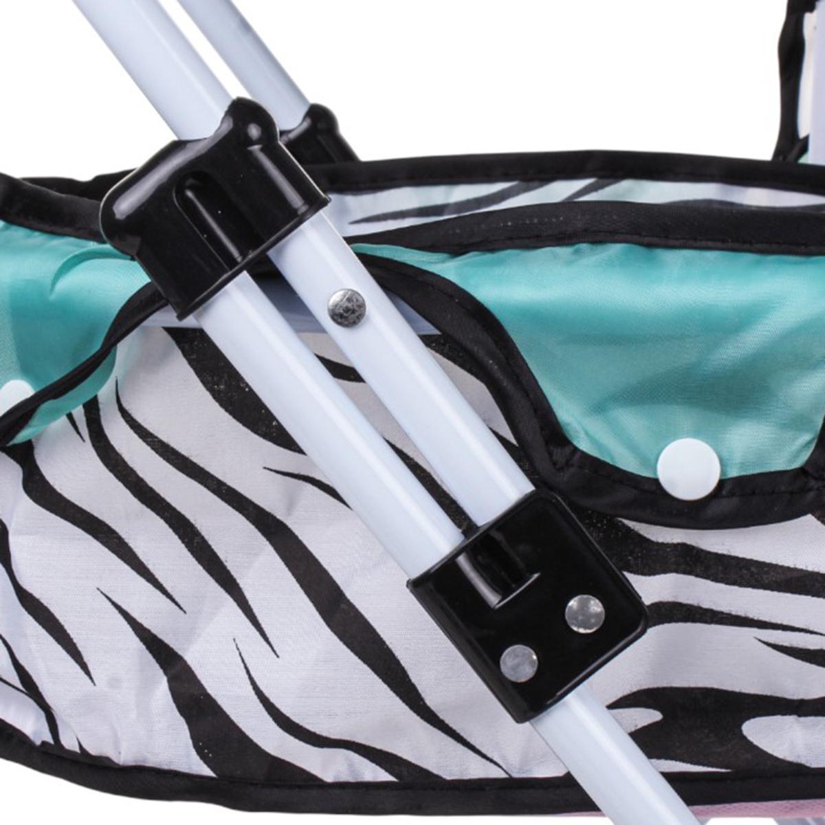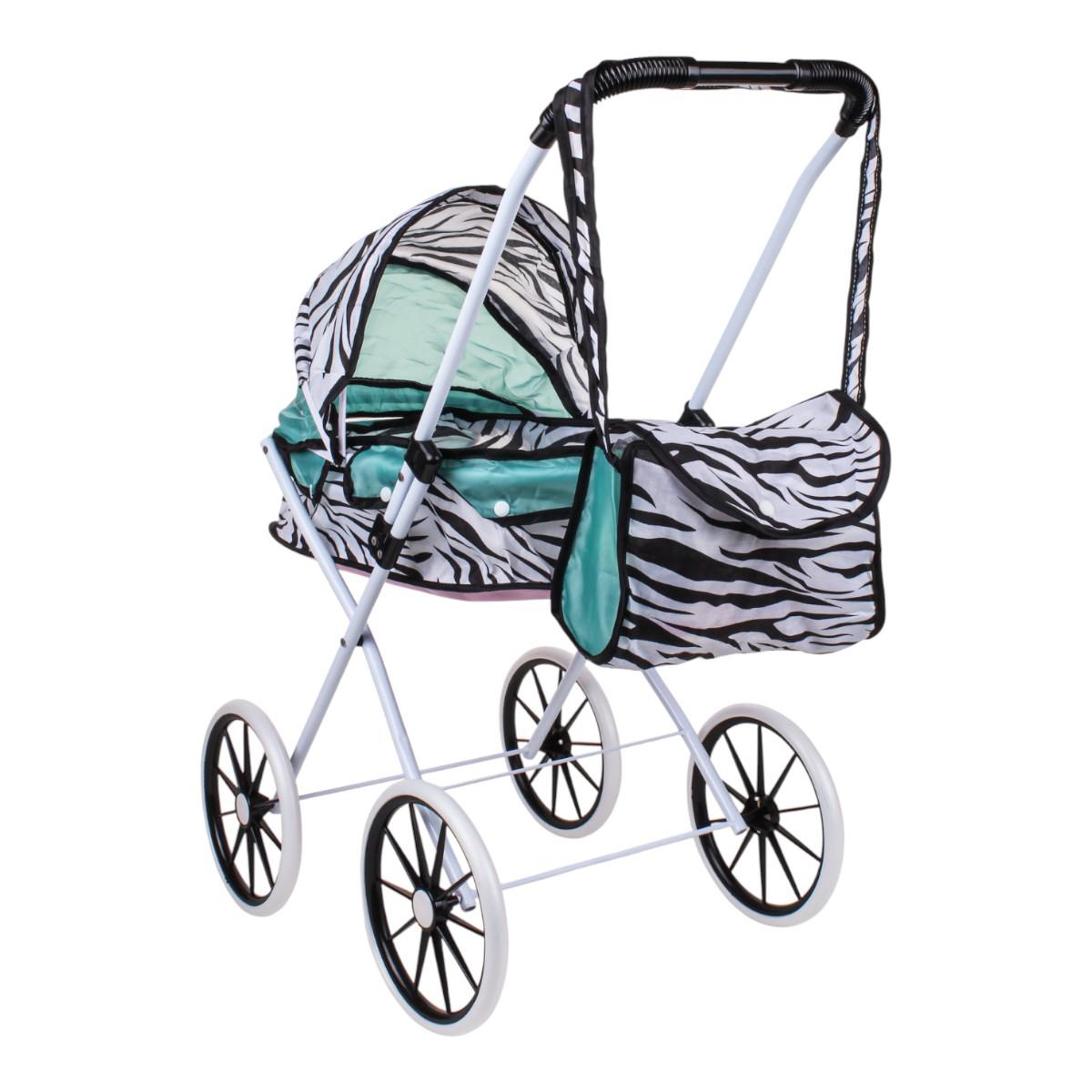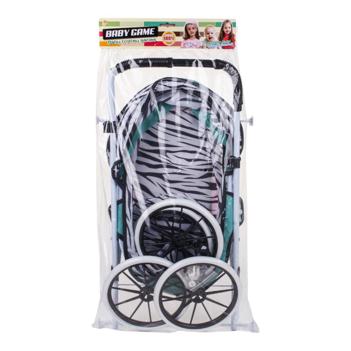 Эта коляска — идеальный аксессуар для сюжетно-ролевых игр «дочки-матери», который создаст атмосферу заботы и уюта. Яркий зебровый принт и сочетание чёрно-белых и бирюзовых элементов делают её стильной и привлекательной. Лёгкая и устойчивая конструкция обеспечит комфортную игру как дома, так и на улице.