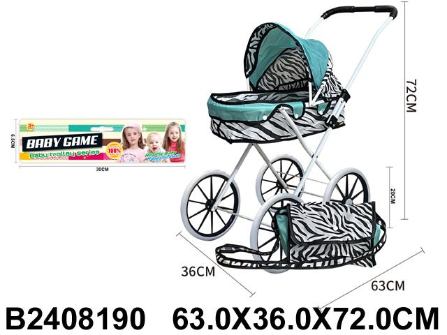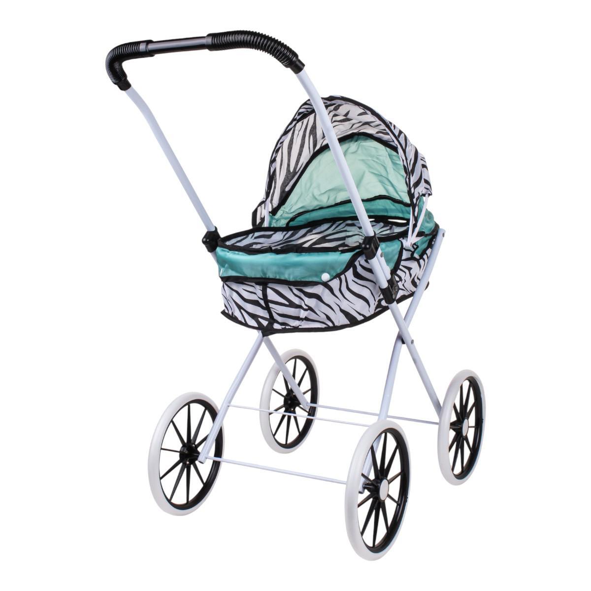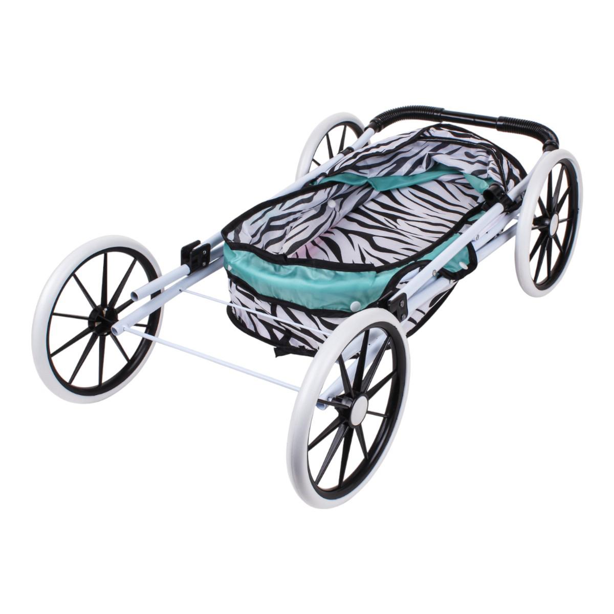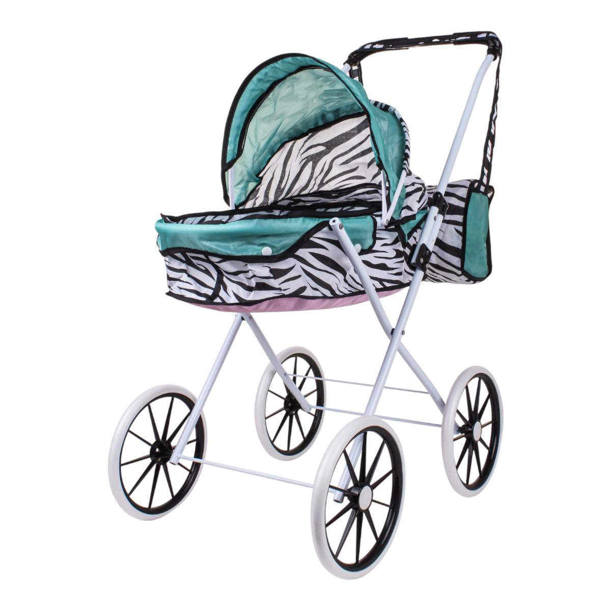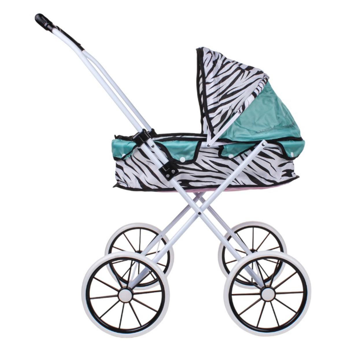Эта коляска — идеальный аксессуар для сюжетно-ролевых игр «дочки-матери», который создаст атмосферу заботы и уюта. Яркий зебровый принт и сочетание чёрно-белых и бирюзовых элементов делают её стильной и привлекательной. Лёгкая и устойчивая конструкция обеспечит комфортную игру как дома, так и на улице.