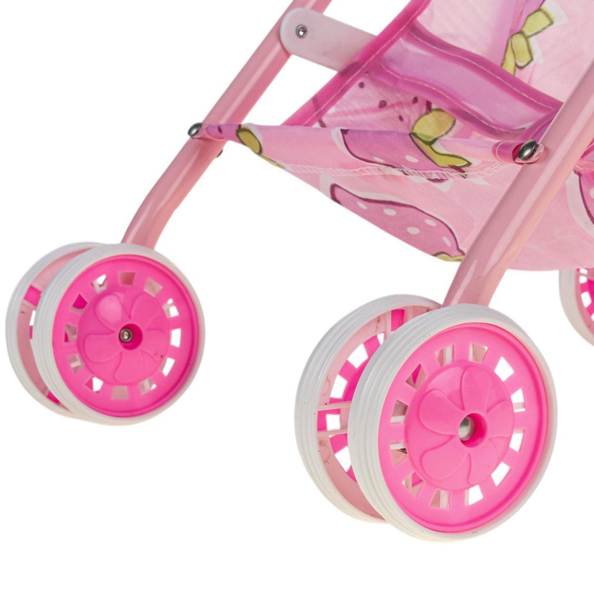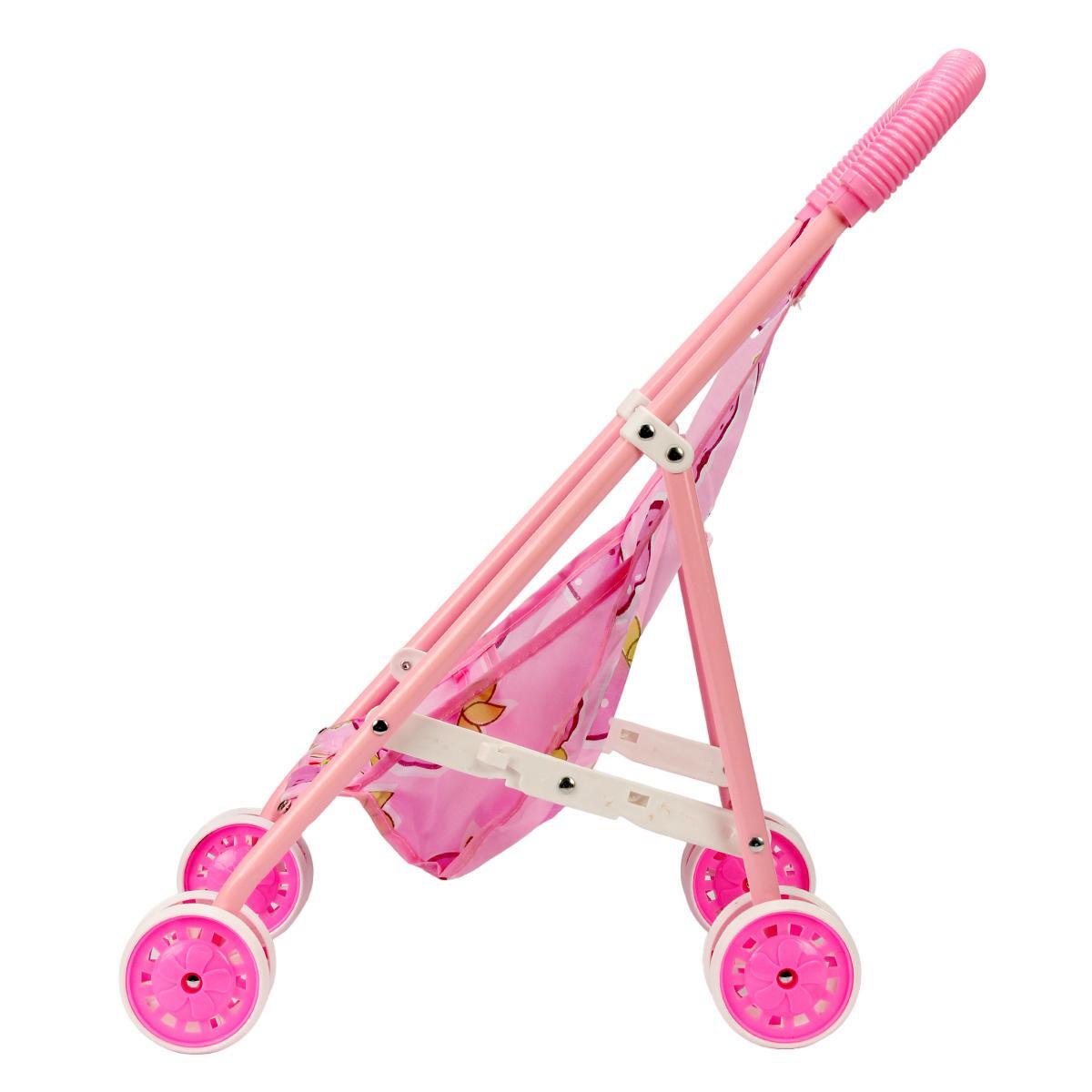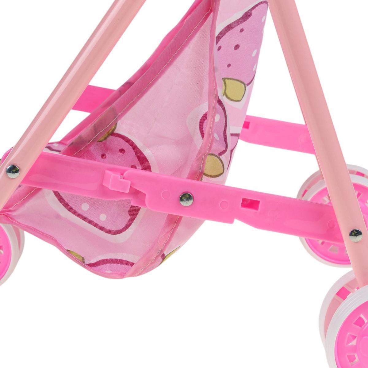 Коляска предназначена для игры с куклами и мягкими игрушками. Она легко складывается и раскладывается, что делает её идеальной для транспортировки. Высота коляски составляет 45 см, длина — 33 см, ширина — 26 см, а диаметр колёс — 6 см. Это позволяет использовать её как для маленьких кукол, так и для мягких игрушек.