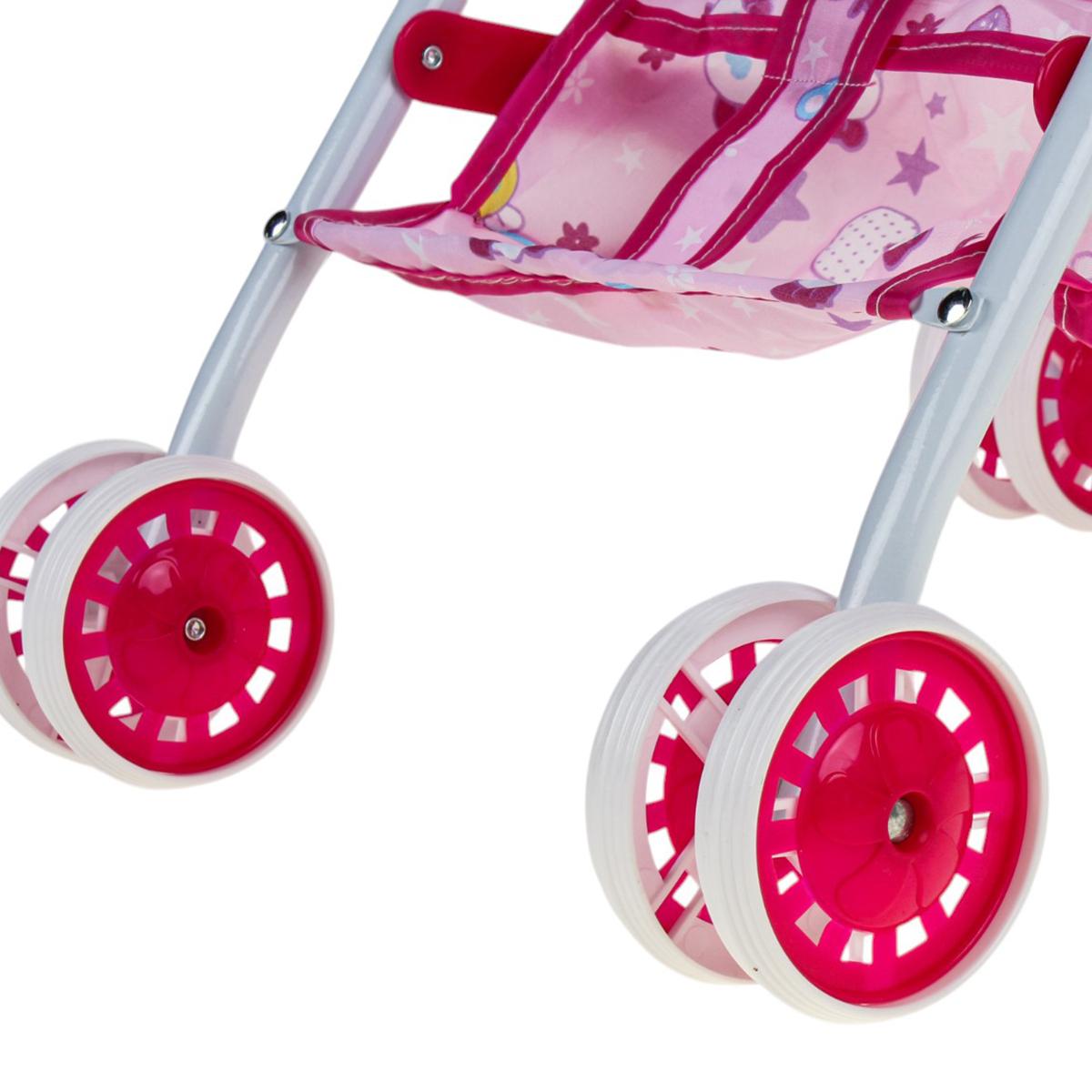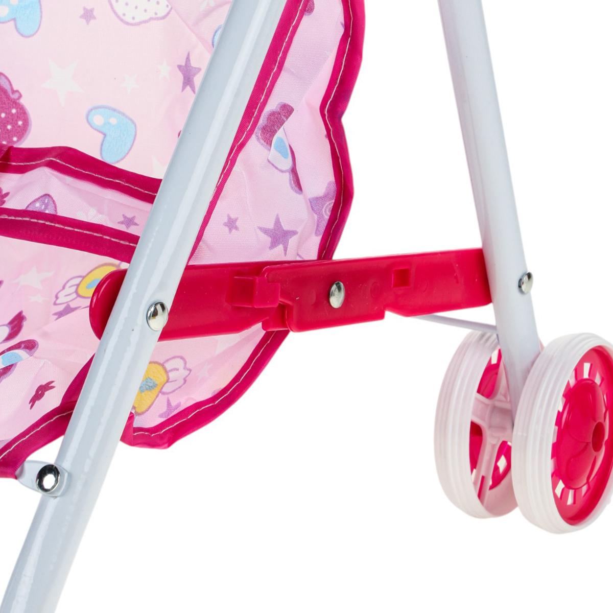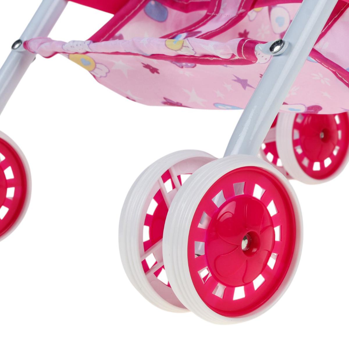 В рамках использования вы можете с легкостью сажать и извлекать куклу, придумывать истории и развивать фантазию. Размеры: высота 45,5 см, длина 31 см, ширина 25 см, колеса диаметром 6 см. Надежность и функциональность делают эту коляску отличным дополнением к любым детским игрушкам, способствуя развитию моторики и воображения вашего ребенка.