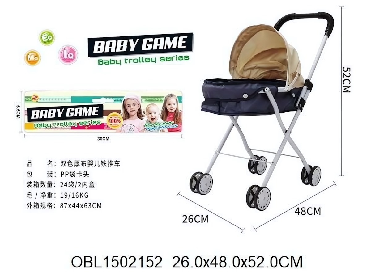Коляска легко используется — достаточно просто толкать ее по полу, а надежный складной металлический каркас обеспечивает устойчивость и долговечность. Тканевый капюшон защищает куклу от света, а мягкая ручка с накладкой гарантирует комфорт для ребенка во время игры.