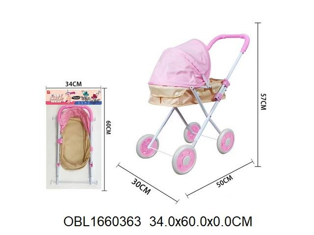 Коляска для кукол лежачая, складная, размер 57x50x30см, металлический каркас, розовый, удобная ручка