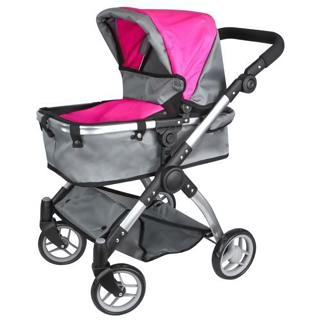 Коляска для кукол лежачая, регулируемая ручка, поворотные колеса, 62х39х68,5 см, серый/розовый