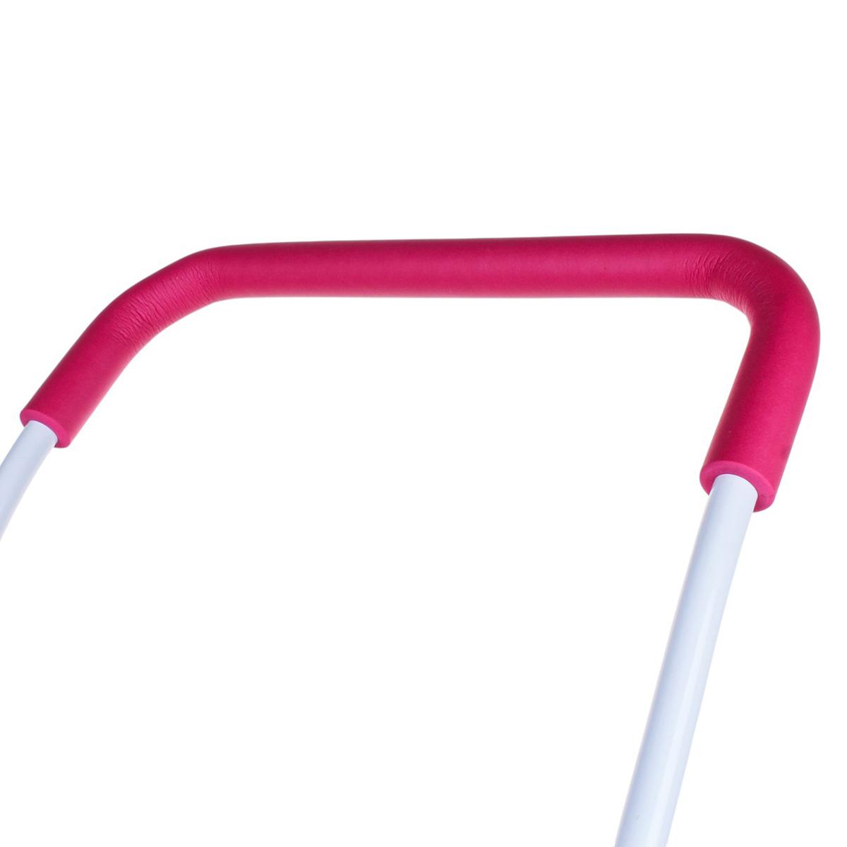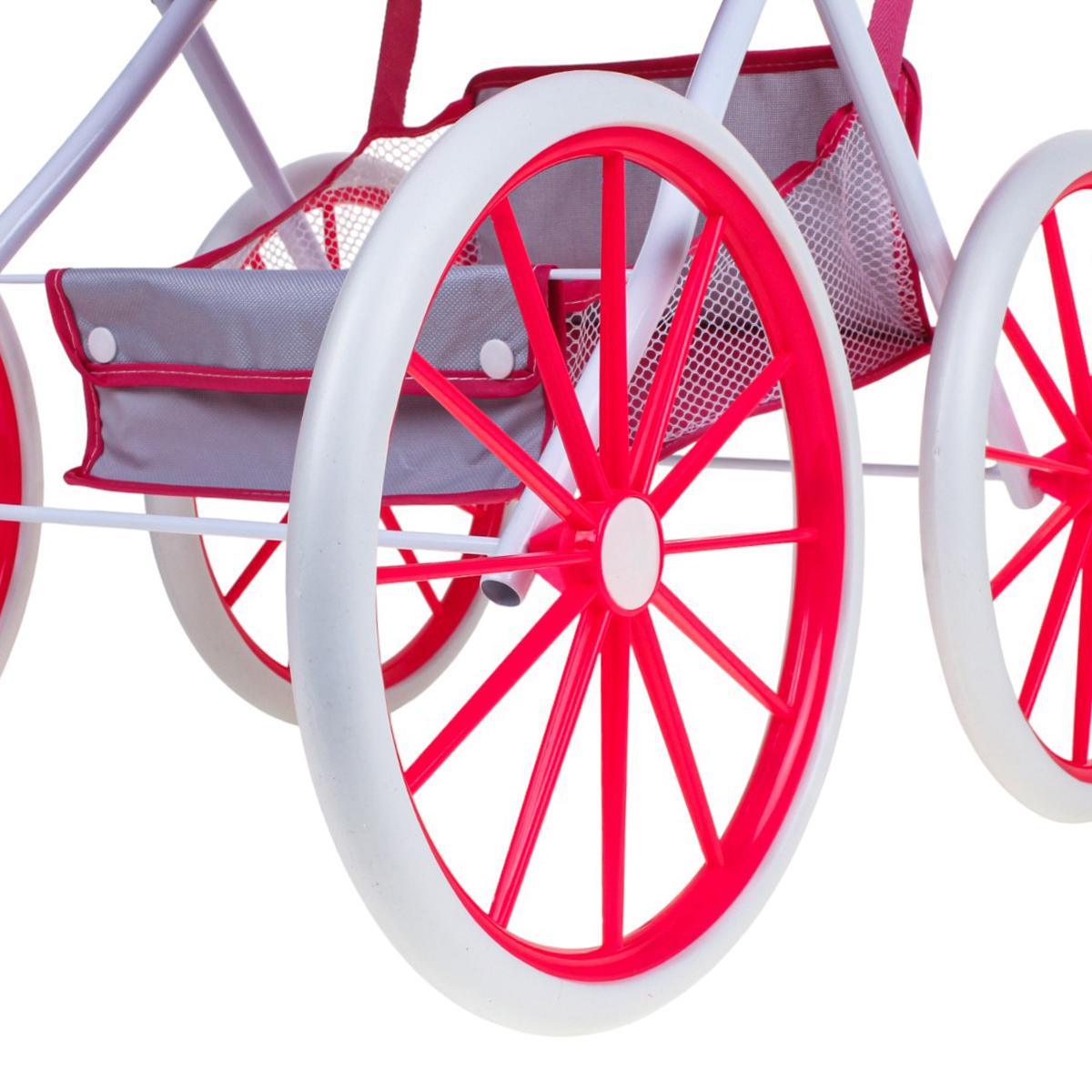 Практические детали: размеры в разложенном виде — 74*66*36 см, упаковка — 62,5*12*37 см. Материал — металл, пластик и ткани. Цветовая гамма — розовый, светло-серый, белый и красный, что делает коляску привлекательной и стильной для ребёнка. Подходит для детей от 3 лет для активных игр и развития малышей.
