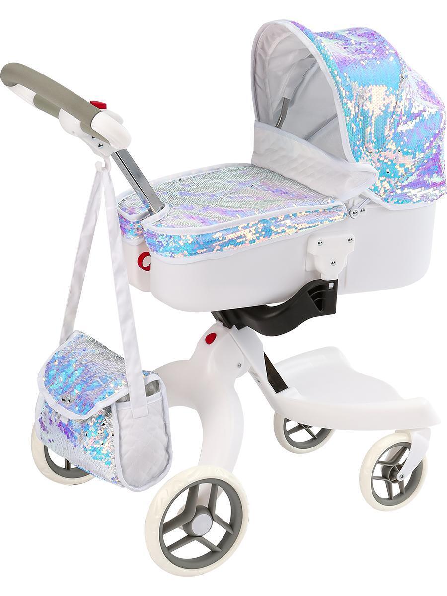 Коляска для кукол лежачая с сумкой, металл/текстиль, 60х42х70см, белая с радужными пайетками
