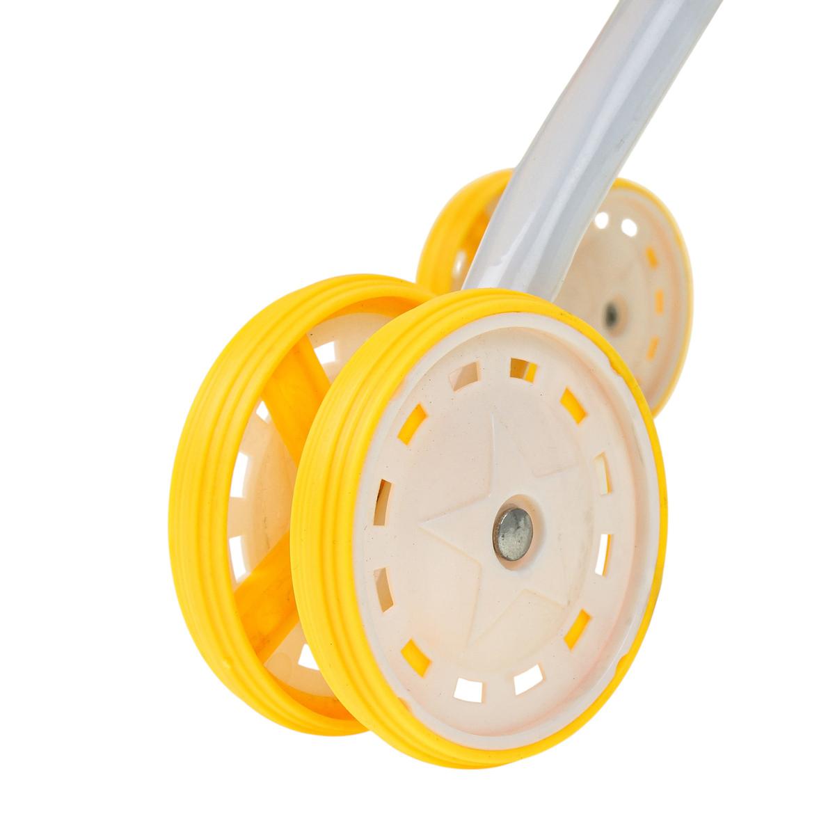 Коляска подходит для сюжетно-ролевых игр, где ребенок учится проявлять внимание, ответственность и заботу. Удобная дугообразная ручка комфортно ложится в ладони, а передний столик-бампер удерживает куклу во время «прогулки». Сдвоенные колеса обеспечивают устойчивость и плавное передвижение по разным поверхностям.