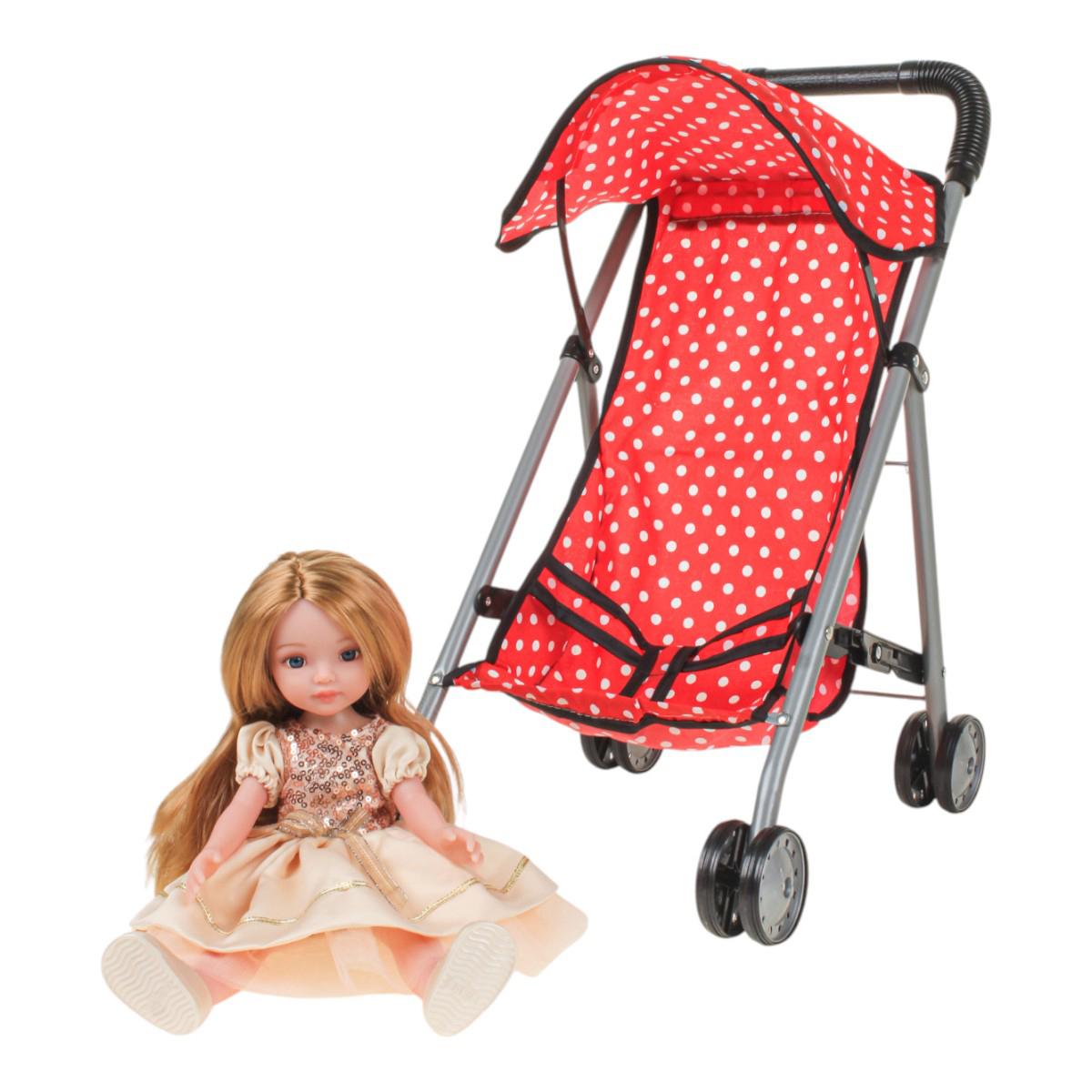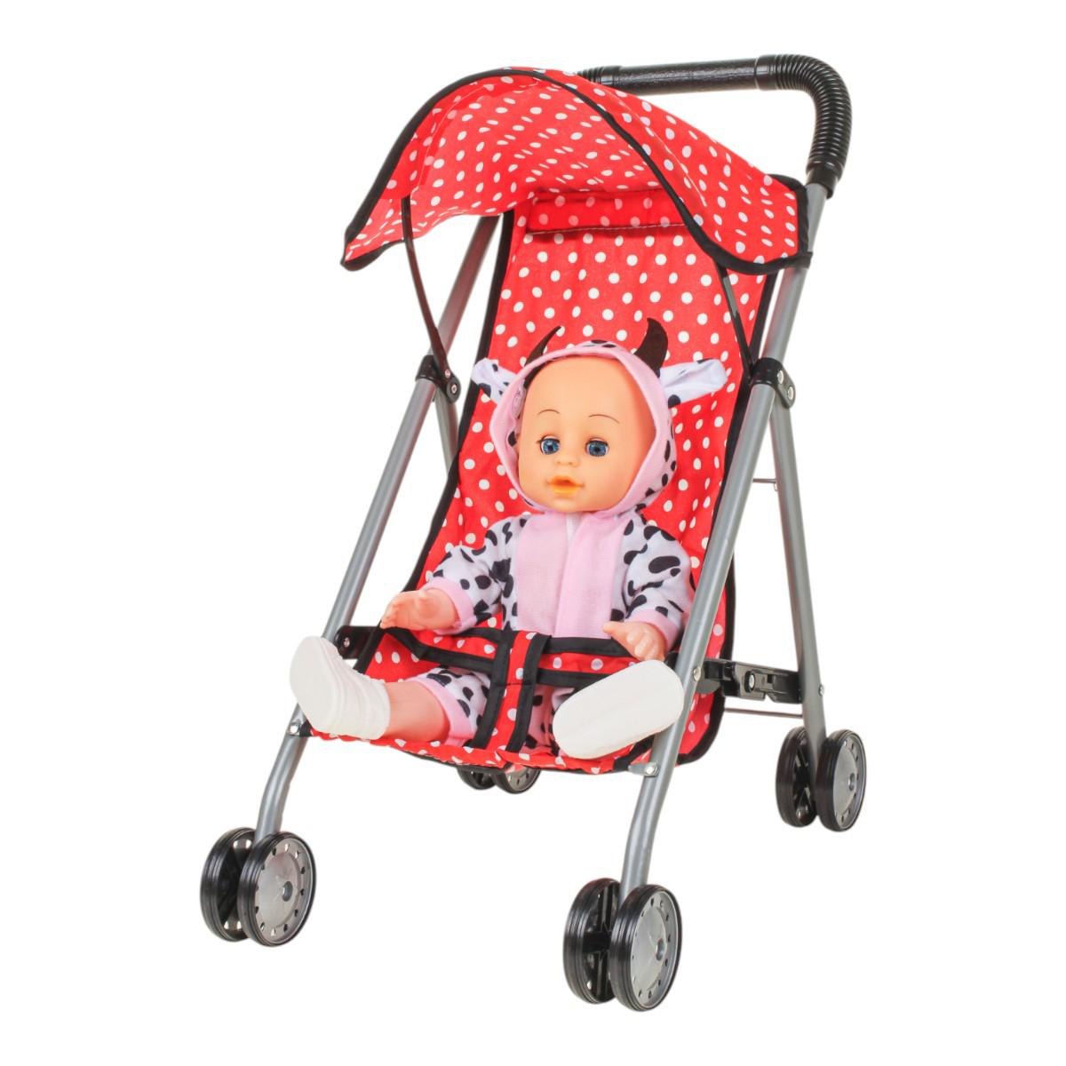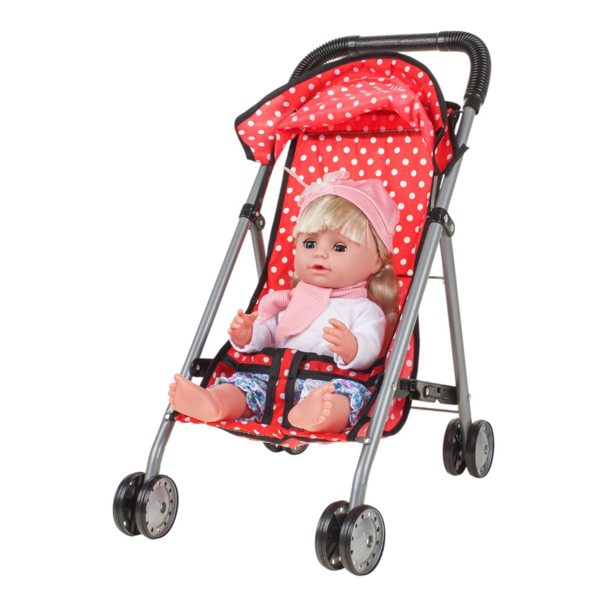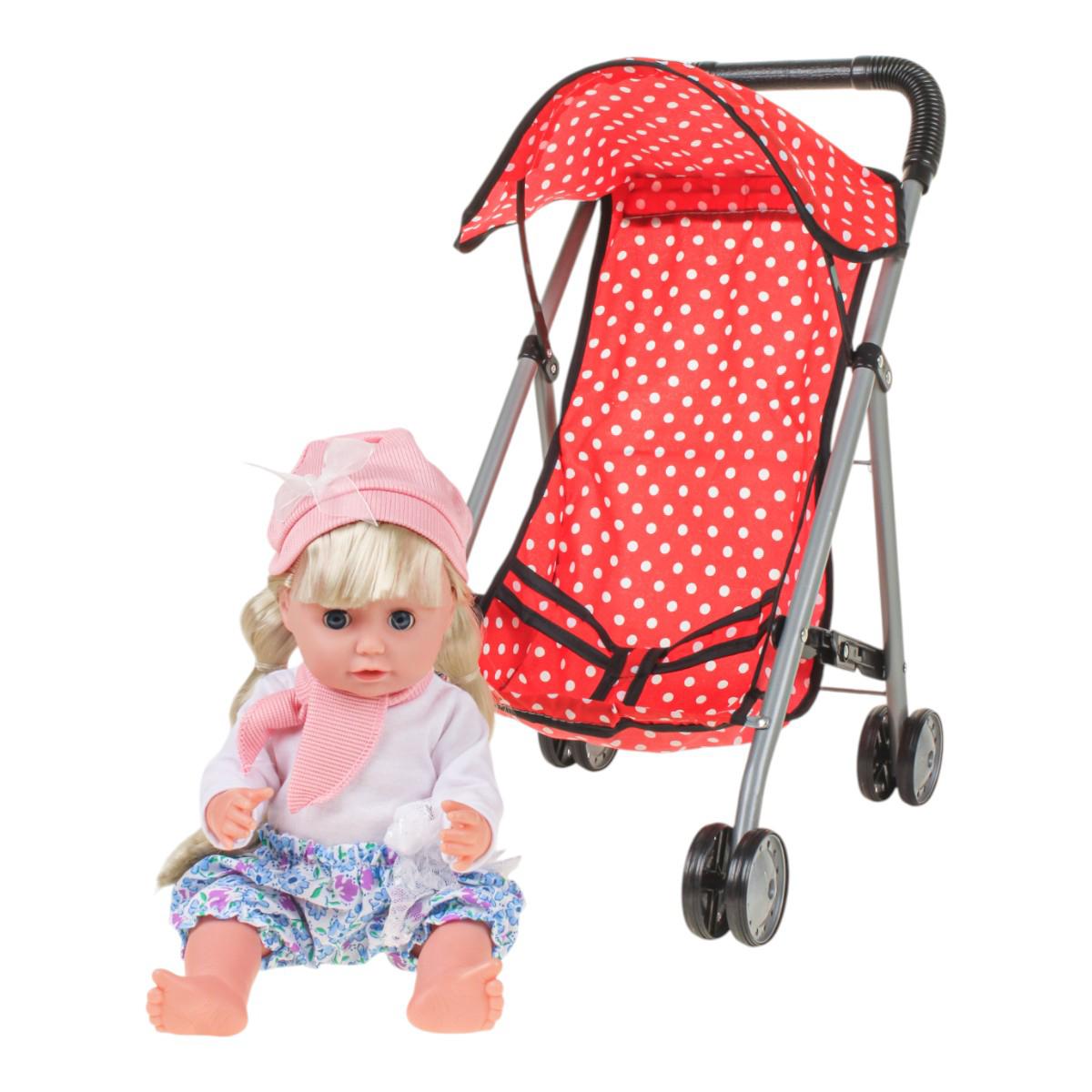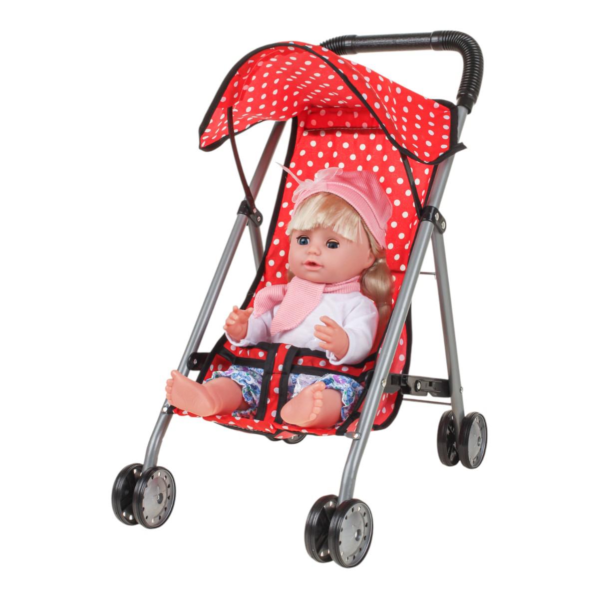 Коляска для кукол складная, красная с белыми горошками, 31х25х45 см, металл/текстиль