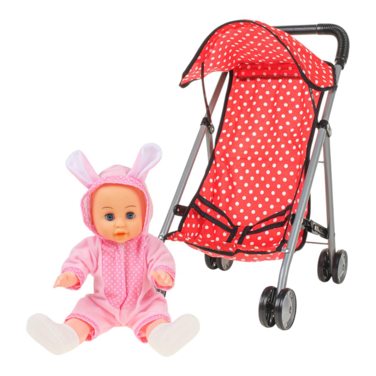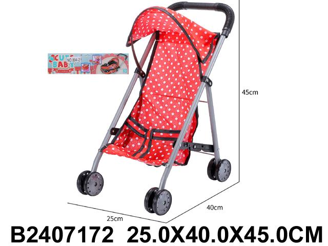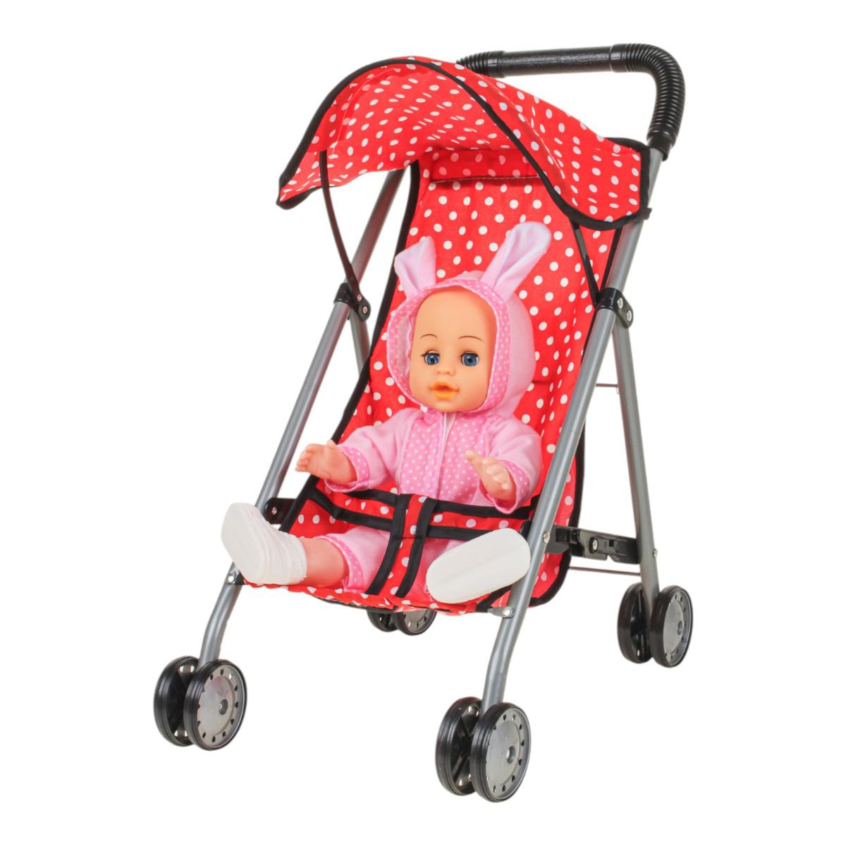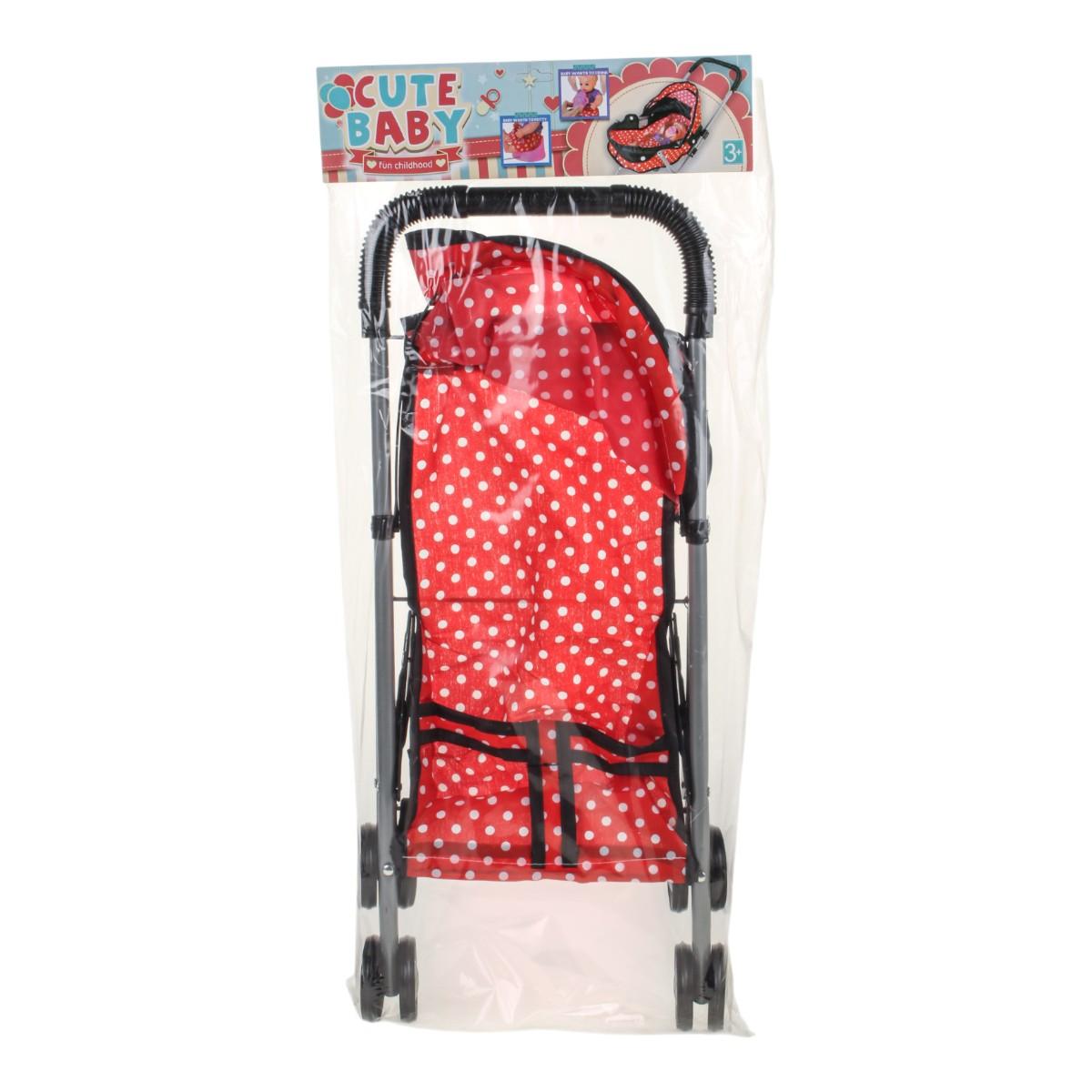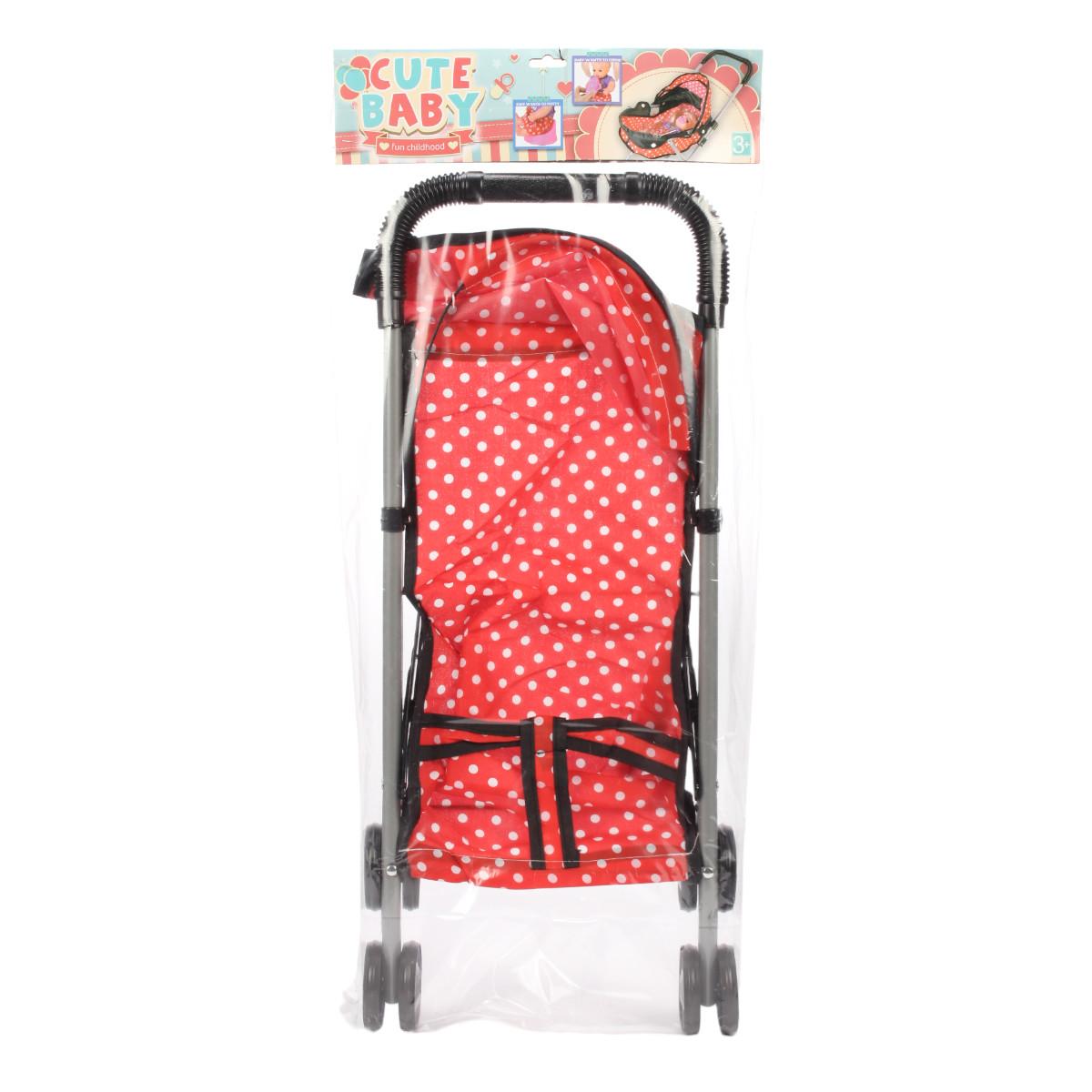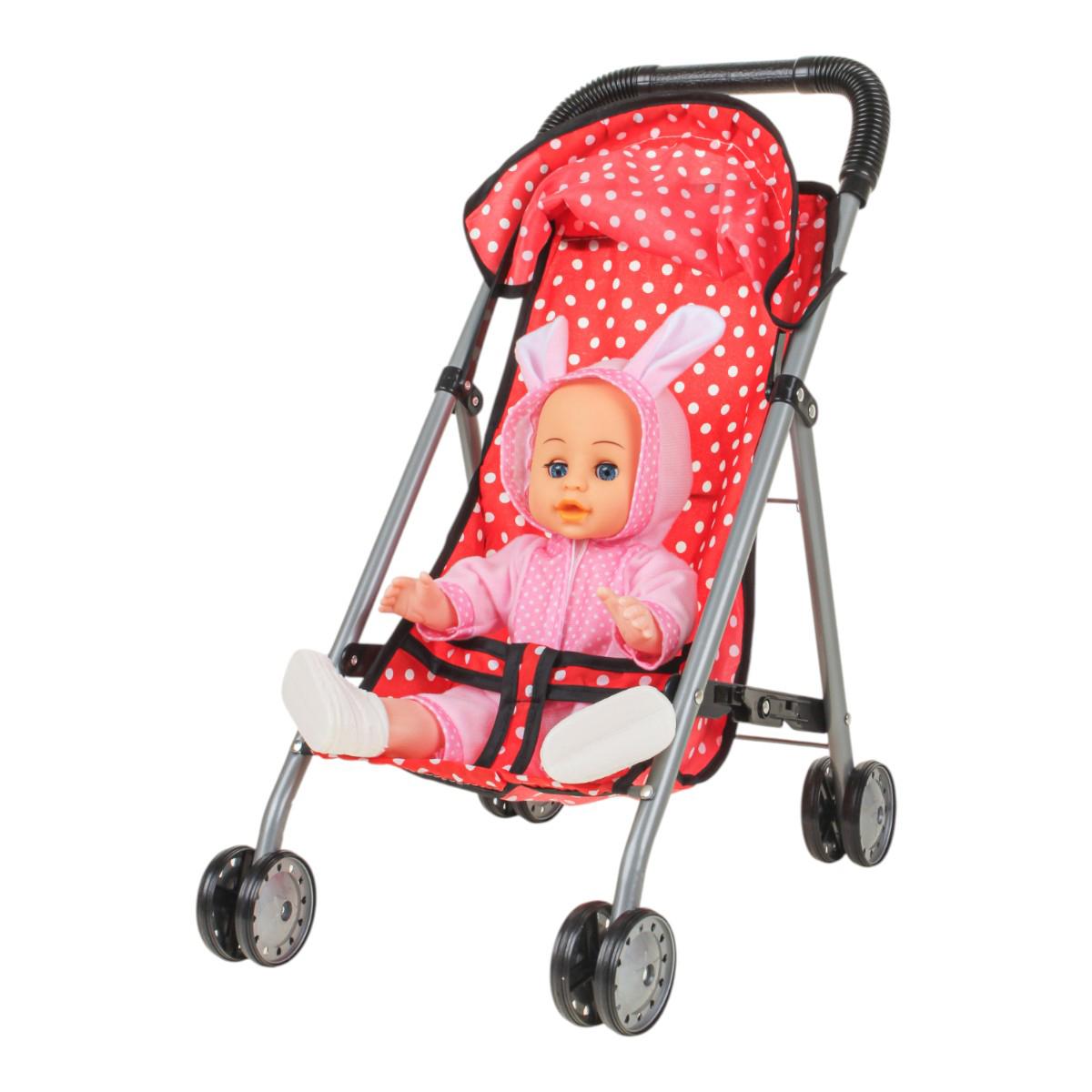 Коляска для кукол складная, красная с белыми горошками, 31х25х45 см, металл/текстиль