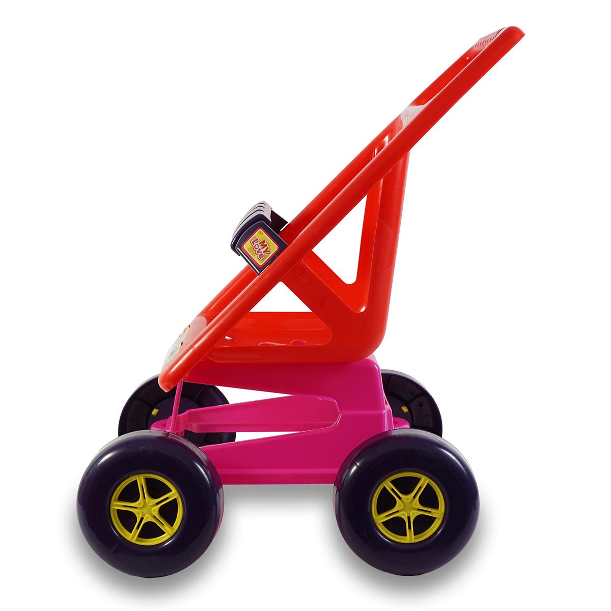 Эта коляска предназначена для детей от 3 лет и идеально подходит для игр как дома, так и на улице. Удобная ручка в форме треугольника обеспечивает комфортное использование, а легкий пластиковый каркас позволяет легко катать кукол. Коляска устойчива и проста в уходе, что делает ее идеальным выбором для активных игр.