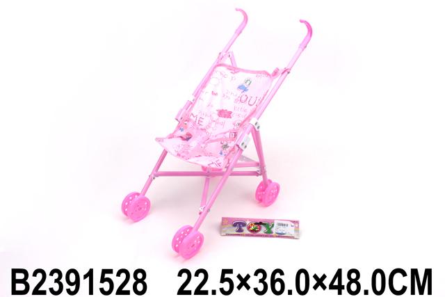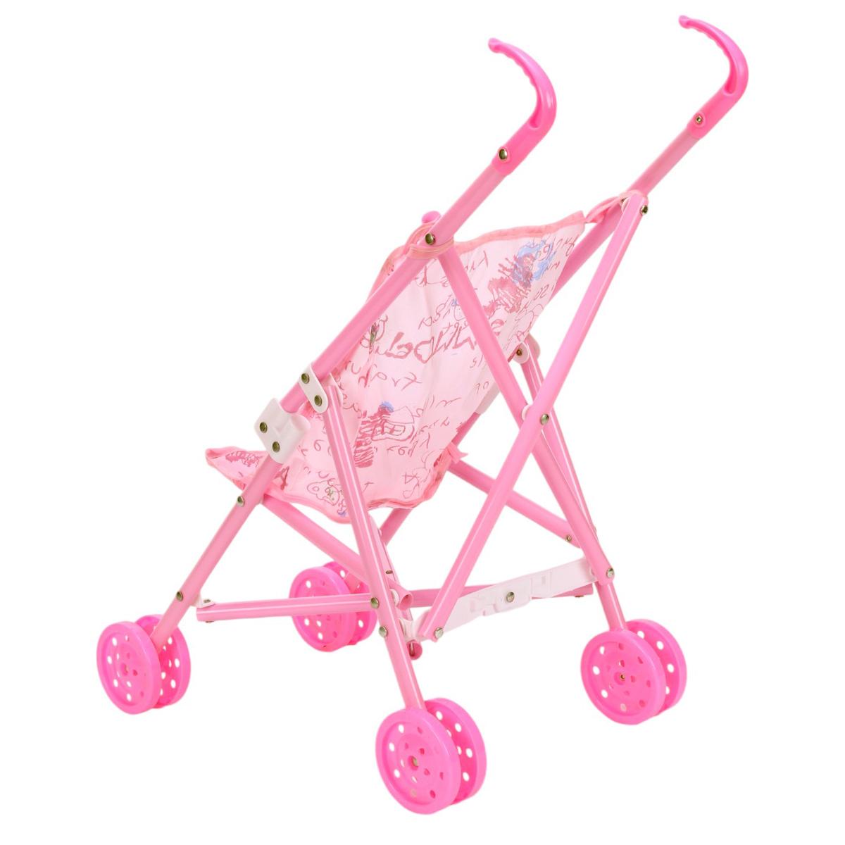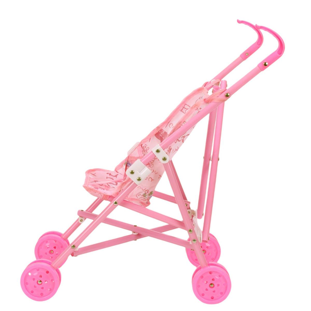Коляска оборудована прочным металлическим каркасом и удобным текстильным сиденьем с узором, что обеспечивает надежность и комфорт. Она легко управляется благодаря четырем колесам, которые хорошо катятся по ровной поверхности. Сиденье оснащено бампером, что предотвращает выпадение куклы во время игры. Коляска подходит как для использования дома, так и на улице, что делает ее универсальным решением для активных игр.