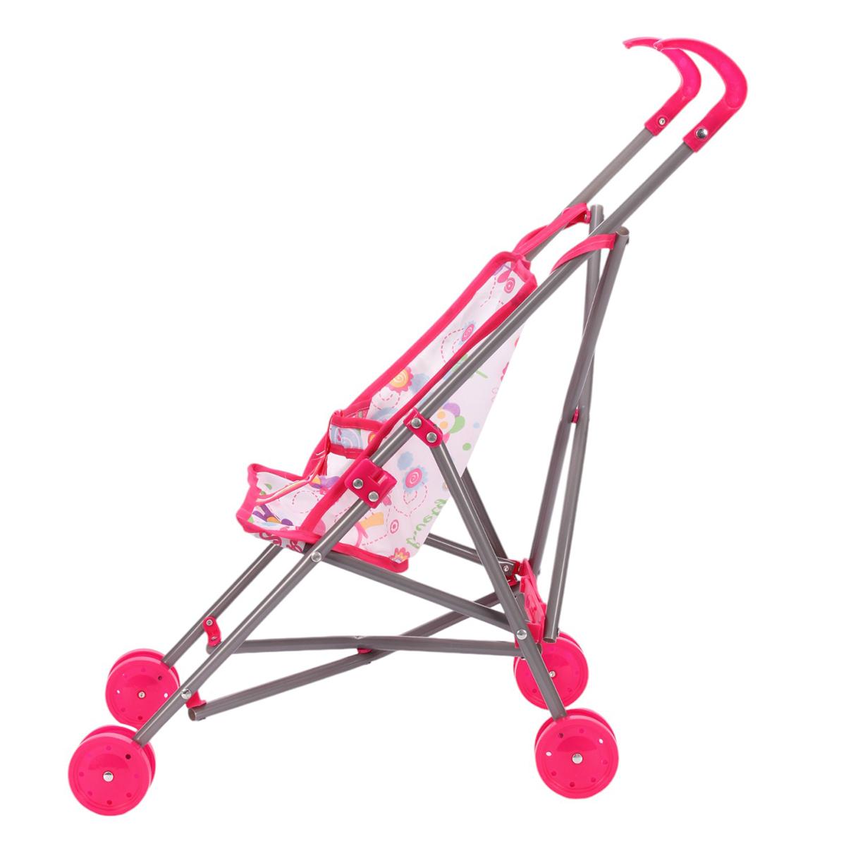 Коляска-трость для куклы складная с бампером, съемный чехол, розовый/серый, 47х24х51 см