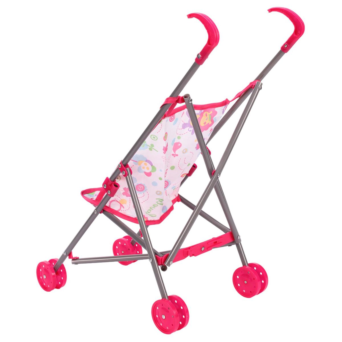 Коляска полностью готова к использованию — просто разложите конструкцию и разместите куклу в мягком сиденье. Яркий дизайн с розовыми акцентами и цветочными мотивами понравится даже самым требовательным малышкам!