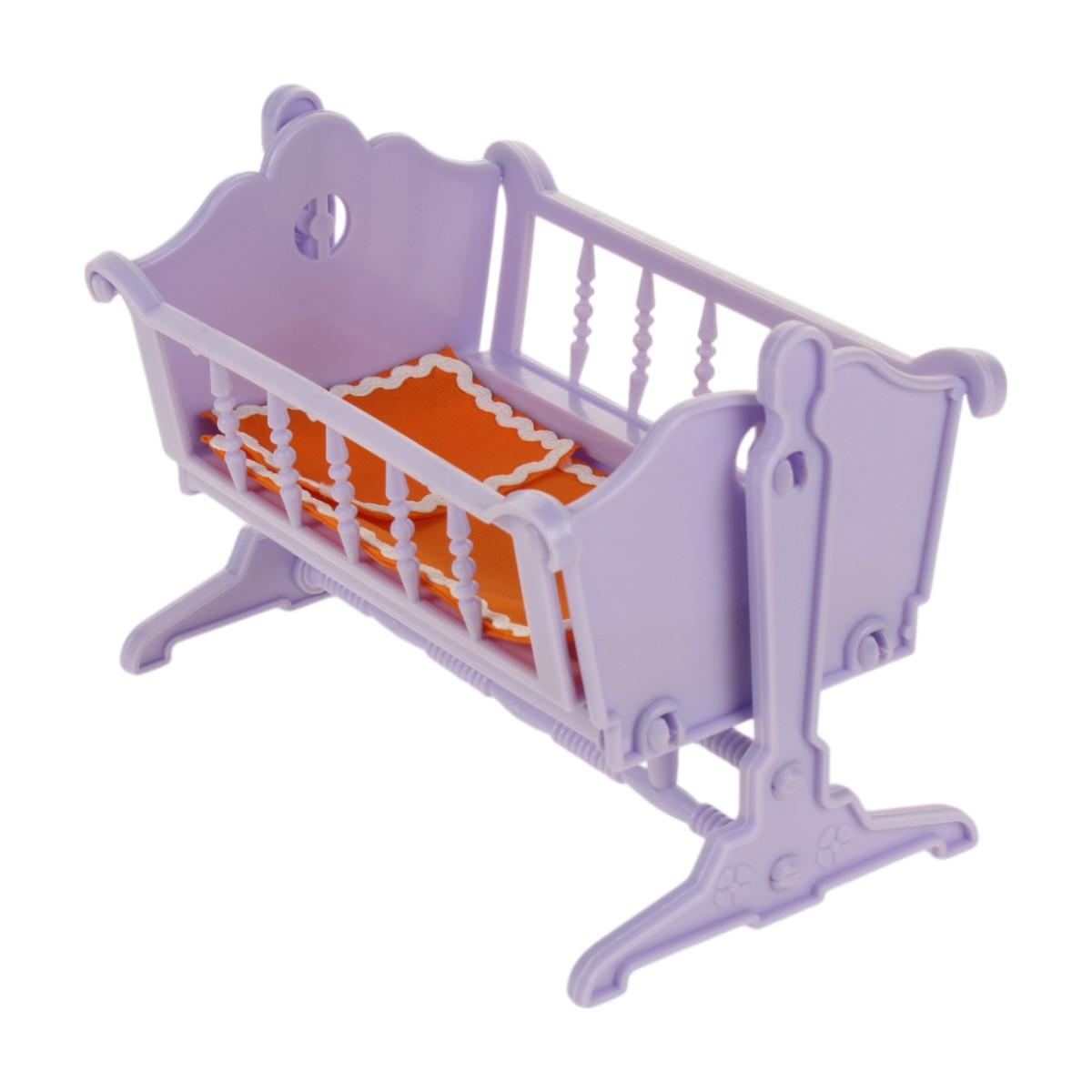 Колыбель для кукол «Конфетти», пластиковая, фиолетовая, устойчивая конструкция с матрасом