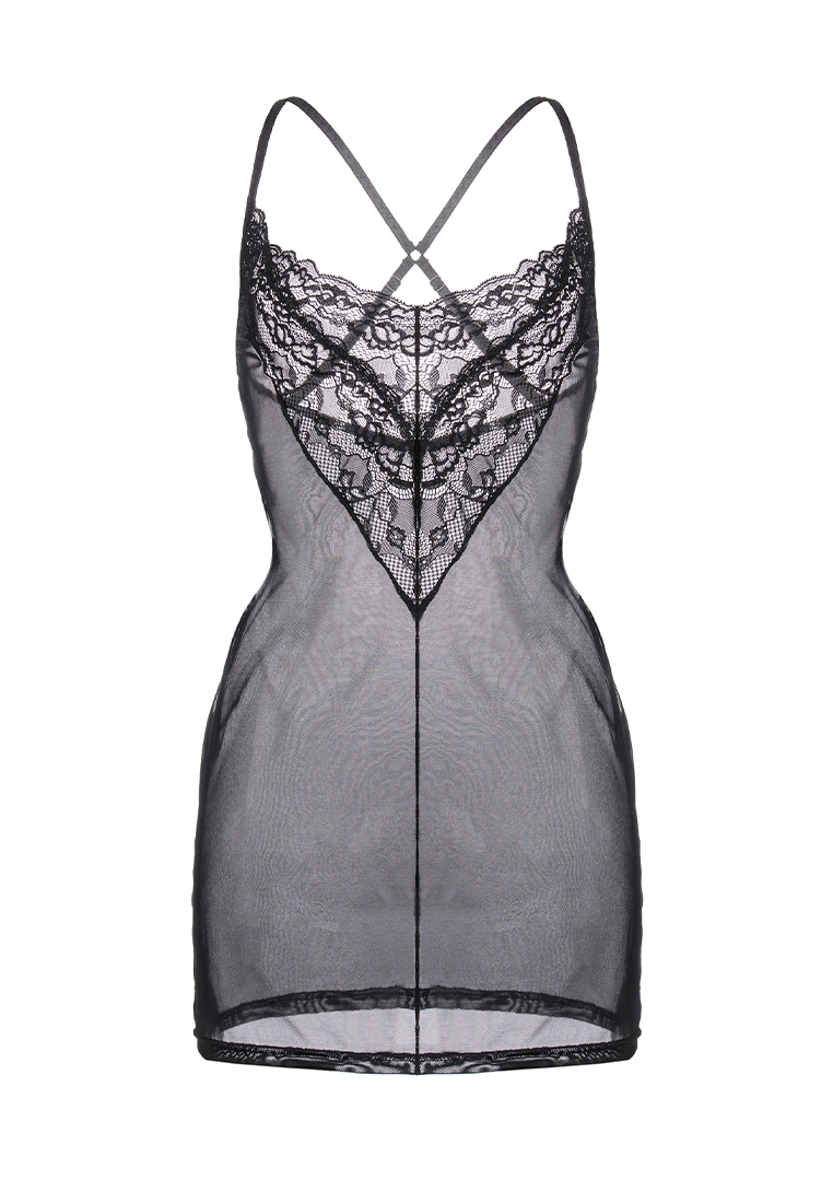 Комбинация Lizaveta создана для того, чтобы подчеркнуть женственные линии и добавить образу выразительности. Полупрозрачная сетка мягко облегает фигуру, а кружевной лиф с V-образным вырезом акцентирует зону декольте. Открытая спина и перекрещивающиеся бретели создают эффектный акцент, который притягивает взгляд и делает образ запоминающимся.