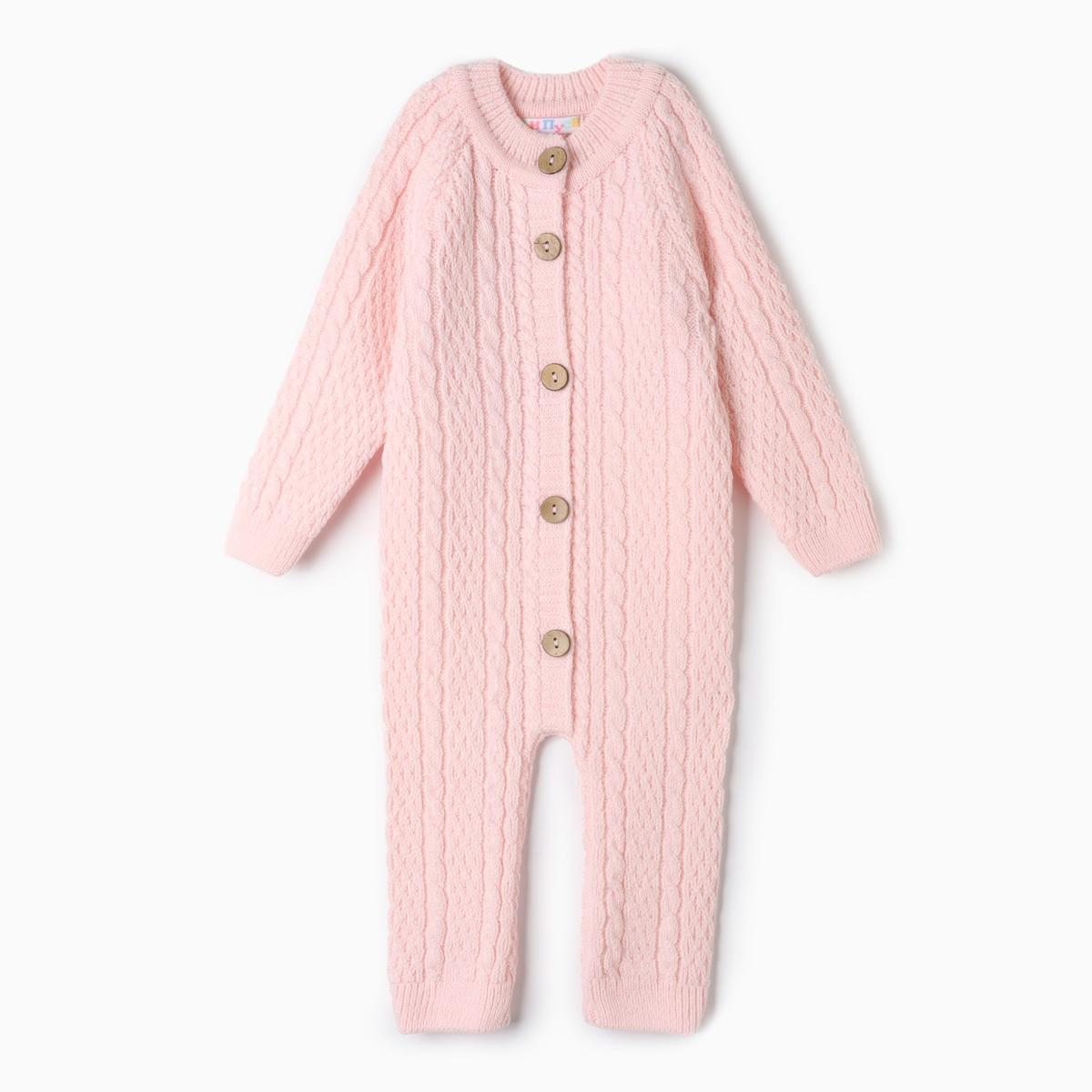 Комбинезон детский Уси-Пуси, размер 68, розовый, трикотаж, шерсть 50%, застёжка на пуговицах, рельефный узор