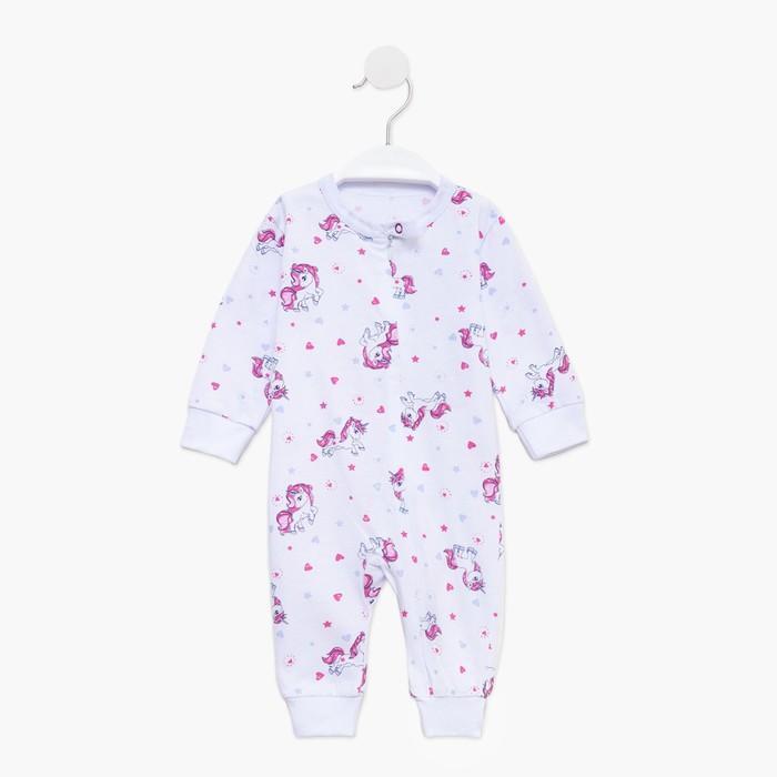 Комбинезон детский трикотажный с единорогами, 100% хлопок, рост 62 см, белый/розовый