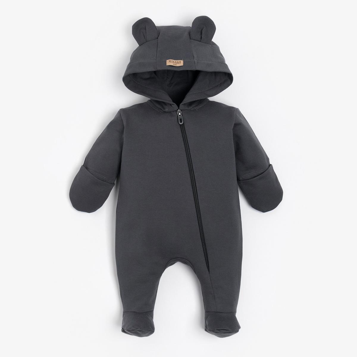 Комбинезон детский трикотажный, графитовый с ушками, р. 68-74 (MINAKU) – уют и комфорт