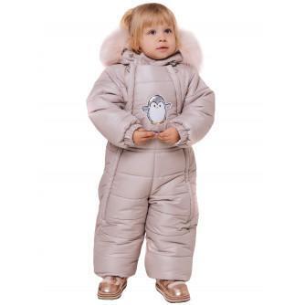 Комбинезон «эмми» бежевый, рост 74 см, хлопок 100%, капюшон с мехом, утеплённый, рисунок пингвина