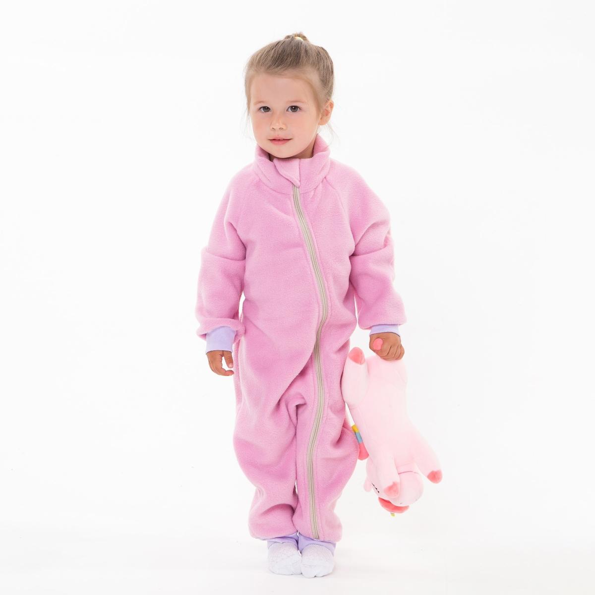 Комбинезон детский флисовый «А.965», розовый с голубыми манжетами, размер 86-92 см, удобная застёжка-молния