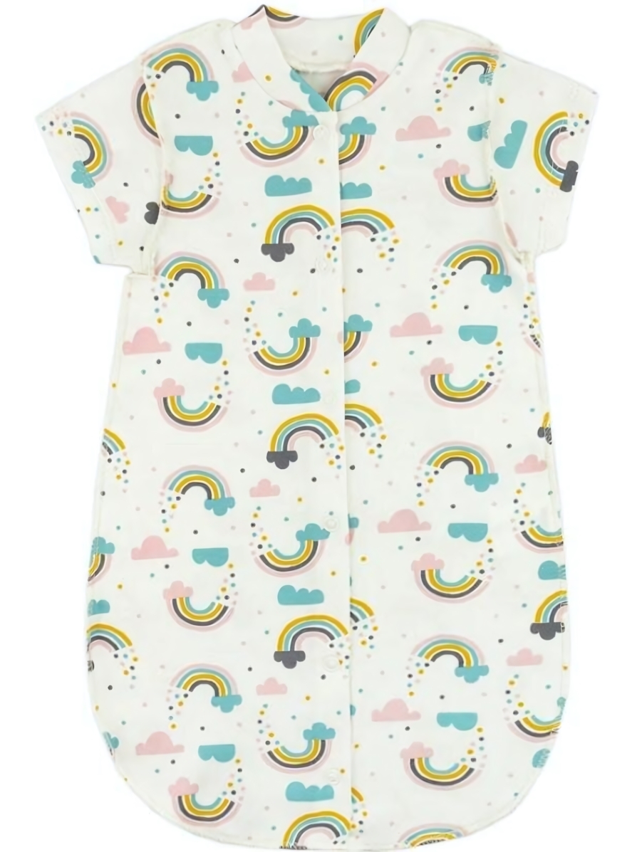 Комбинезон детский «Юлла» для комфортного сна, 100% хлопок, интерлок, размер 62, рисунок радуги и облаков