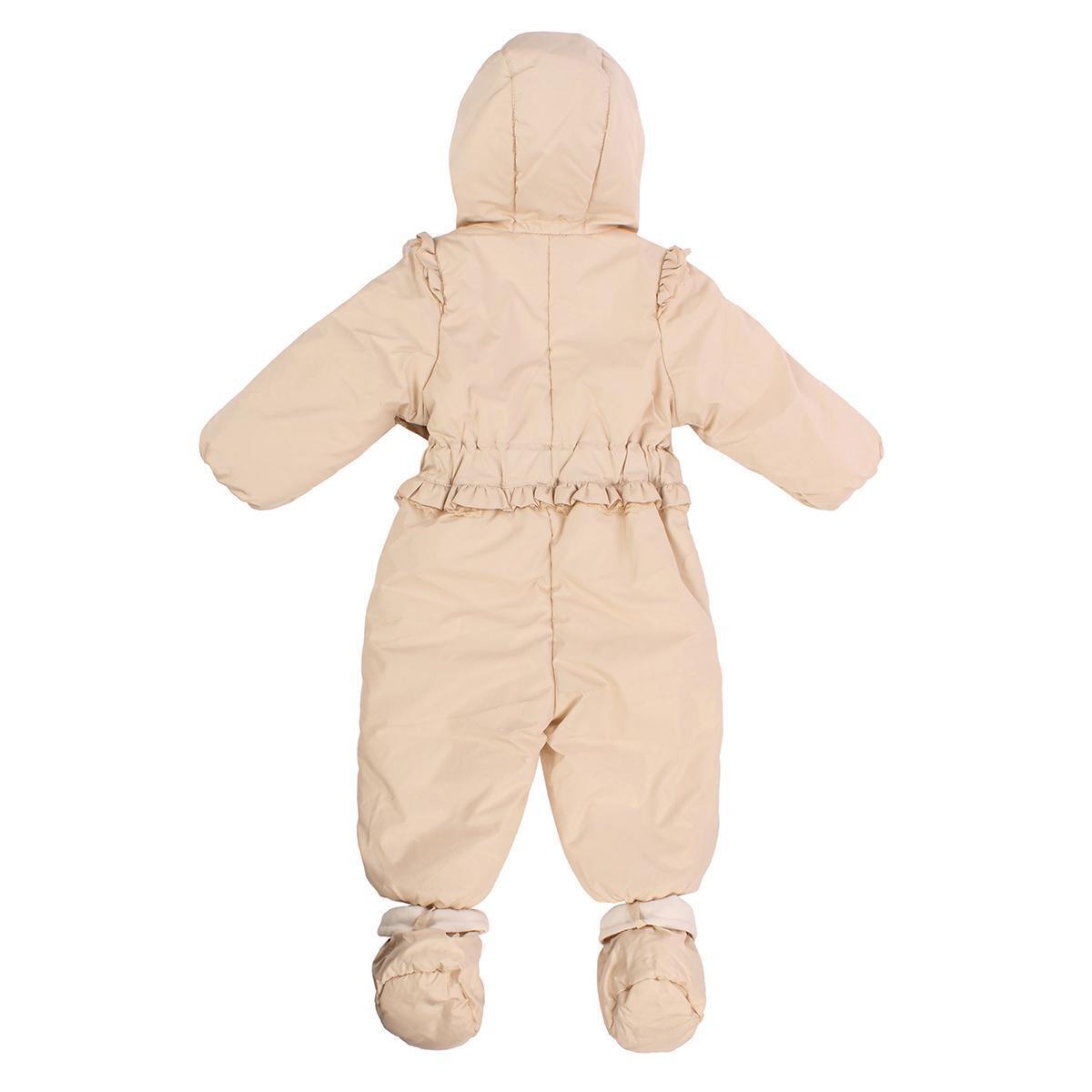 Комбинезон сочетает в себе практичность и эстетику. Модель создана специально для повседневной носки: легко одевается, не стесняет движений, сохраняет тепло. Светло-бежевый цвет с изящным узором подходит как для мальчиков, так и для девочек.