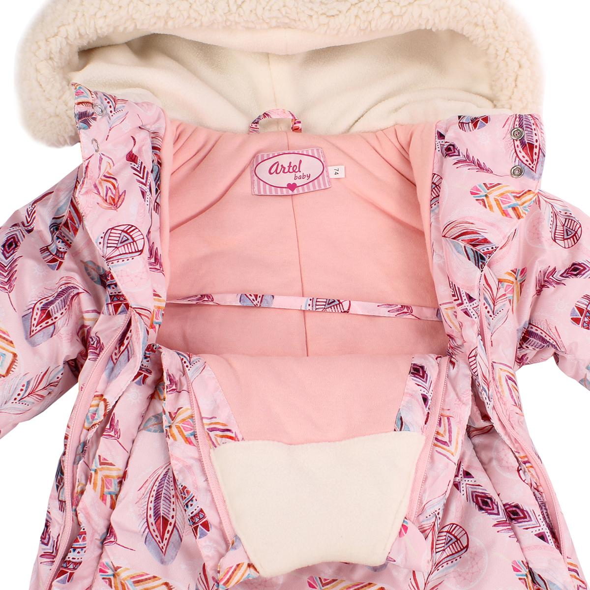 Этот детский зимний комбинезон отлично сочетает теплоизоляцию и удобство для активных малышей. Благодаря использованию мягкой ткани из текстиля и утеплителю 300 г/м², он обеспечивает надежную защиту от холода в холодную погоду. Иллюстрированные перья и яркий дизайн делают его привлекательным и практичным для ежедневных прогулок.